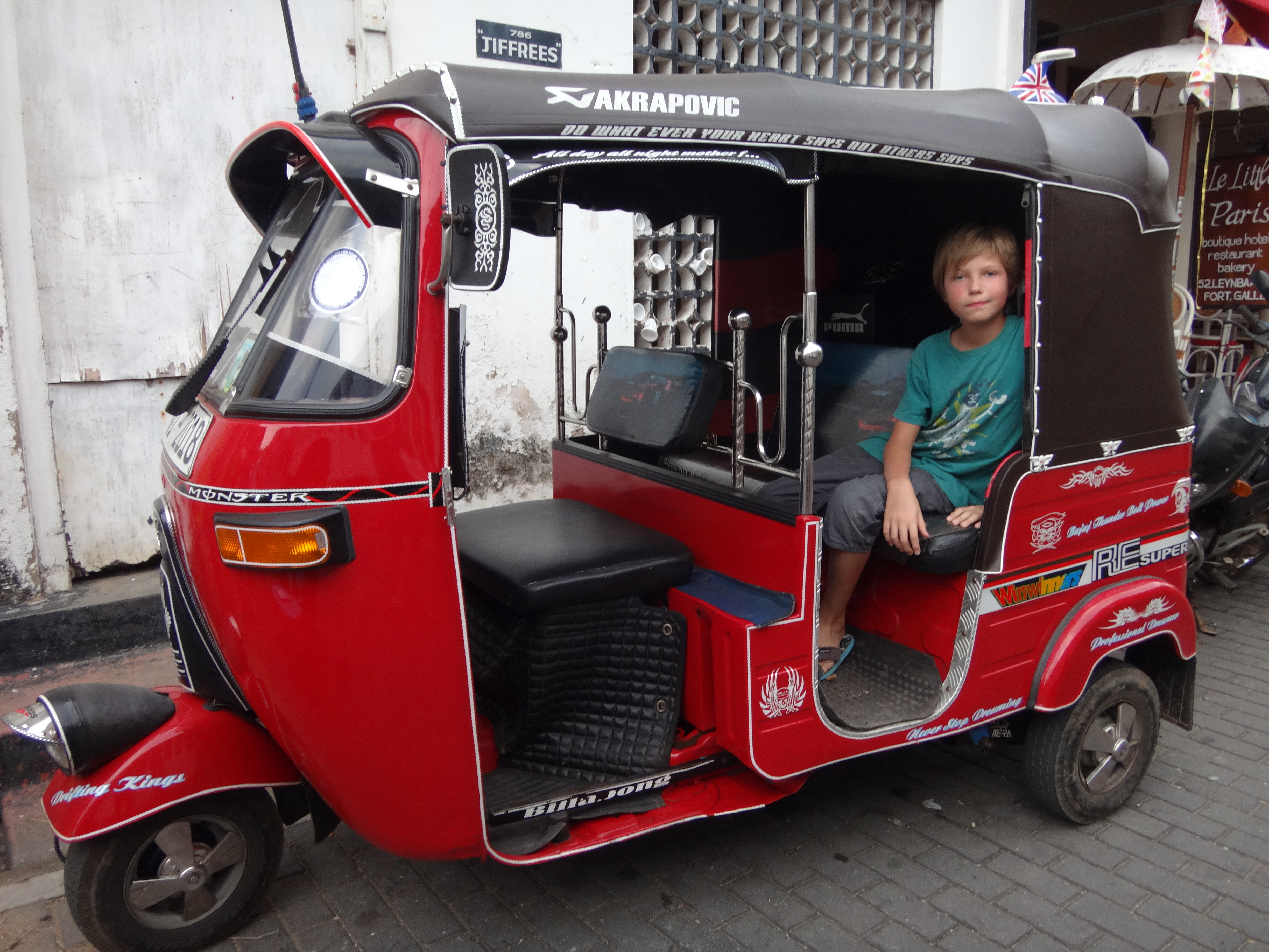 Mes premières impressions du Sri Lanka sont super bonnes ! J’ai découverts ce qu’était un tùk-tùk, c’est une sorte de mini voiture à trois roues avec un guidon de vélo.