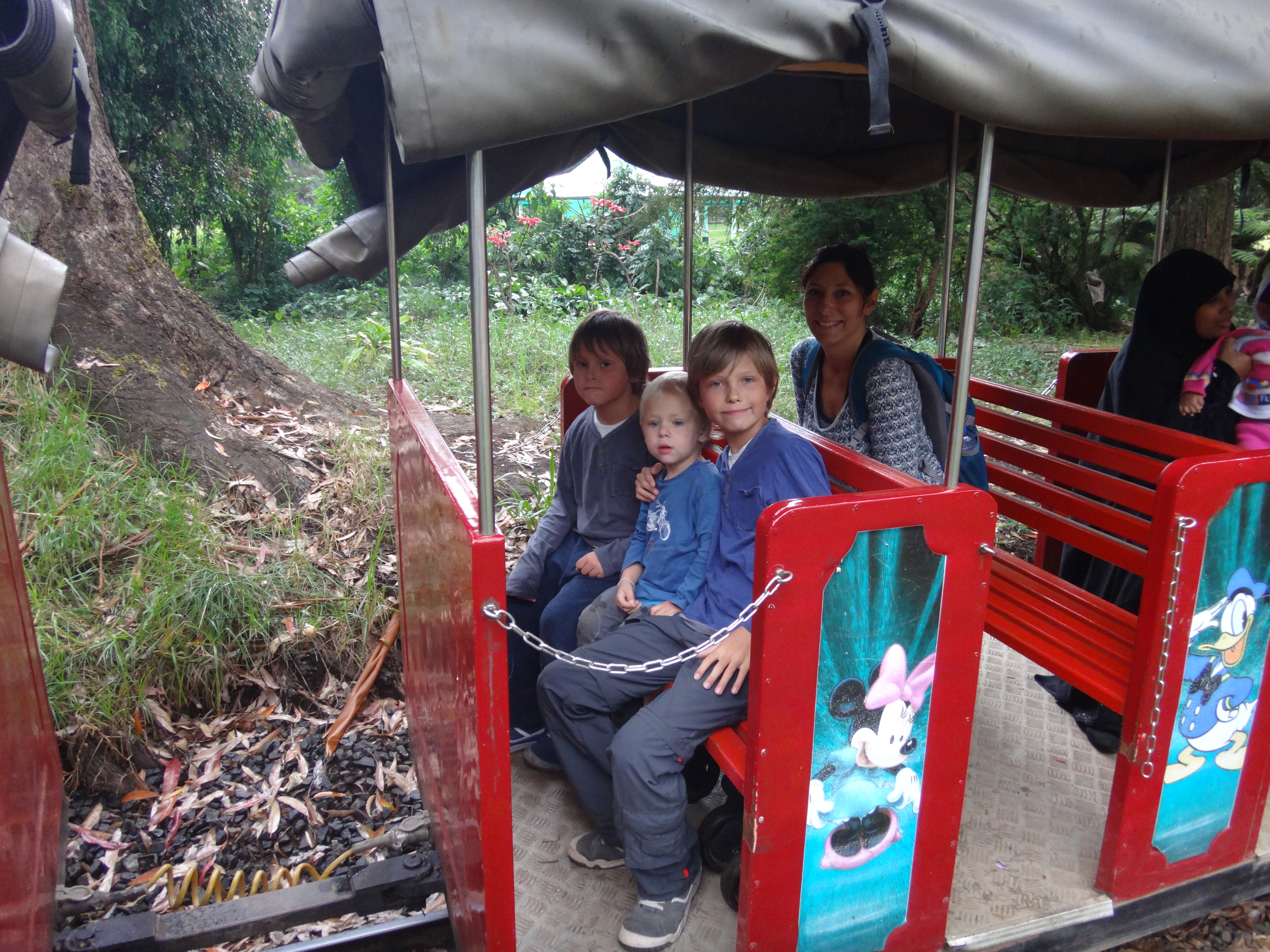 Bref, donc hier on a profiter d’une accalmie pour aller se balader au parc Victoria au centre de la ville, très bel endroit rempli d’arbres centenaires et de pelouses immaculées. Il y a même un grand coin-jeu pour les enfants ! Bon en regardant de plus près c’était plutôt une vision d’horreur pour les parents: bouts de ferraille bien tranchants, trous béant au milieu du toboggan, tourniquet dont tu ne comprends même pas comment il fait pour encore tourner…mais le pire c’était peut être la grande roue ( bon, de taille raisonnable tout de même) c’est un moteur de mobylette qui la fait tourner !!! Du délire !!! Et le gars pour la faire démarrer qui se suspend a une corde comme pour sonner les cloches ! Rigolo mais l’installation était un peu flippante quand même !