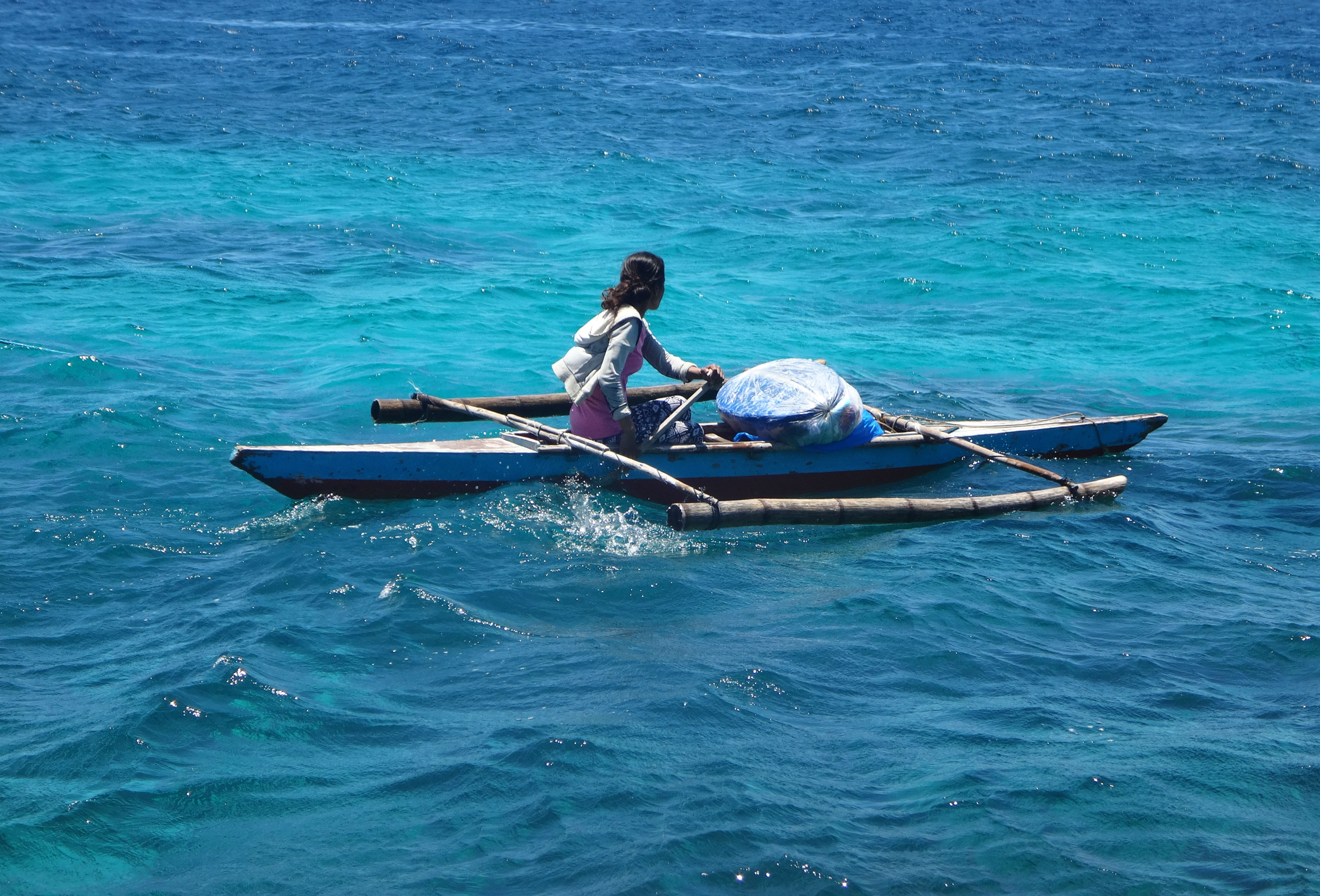 Pour aller voir les tortues nous avons pris un bateau qui s’appelle « Banca » aux Philippines, c’est un bateau à balancier.