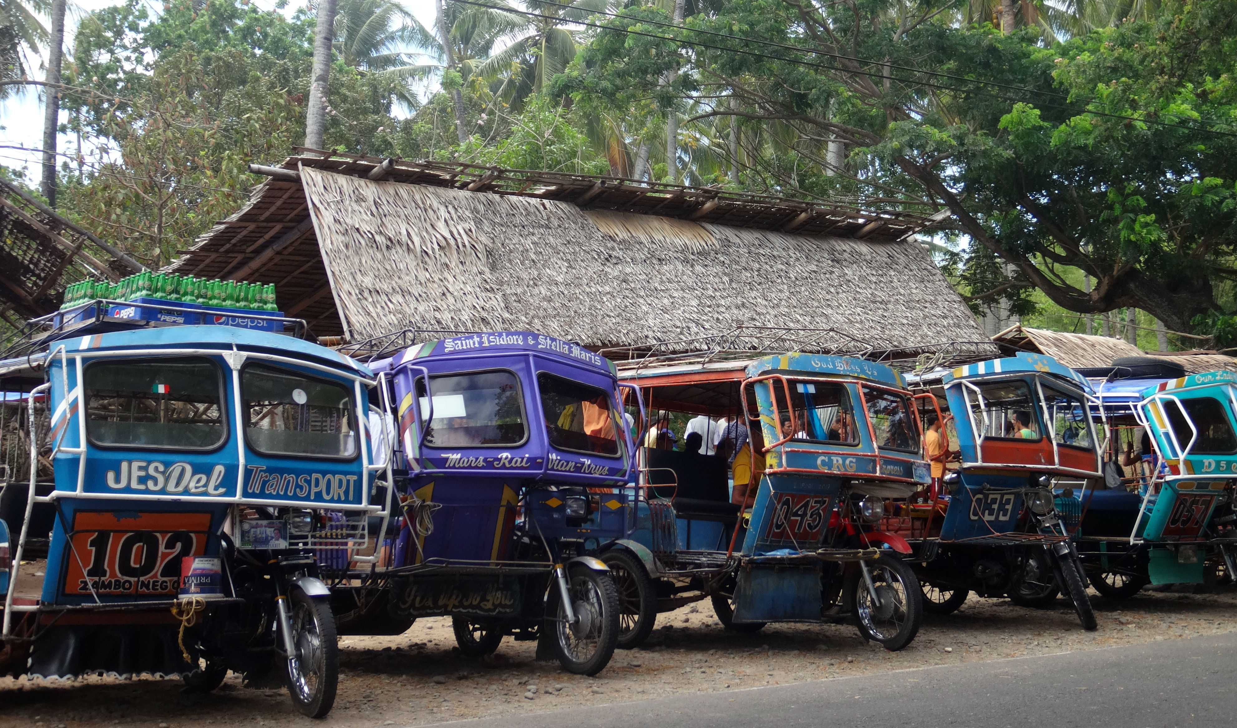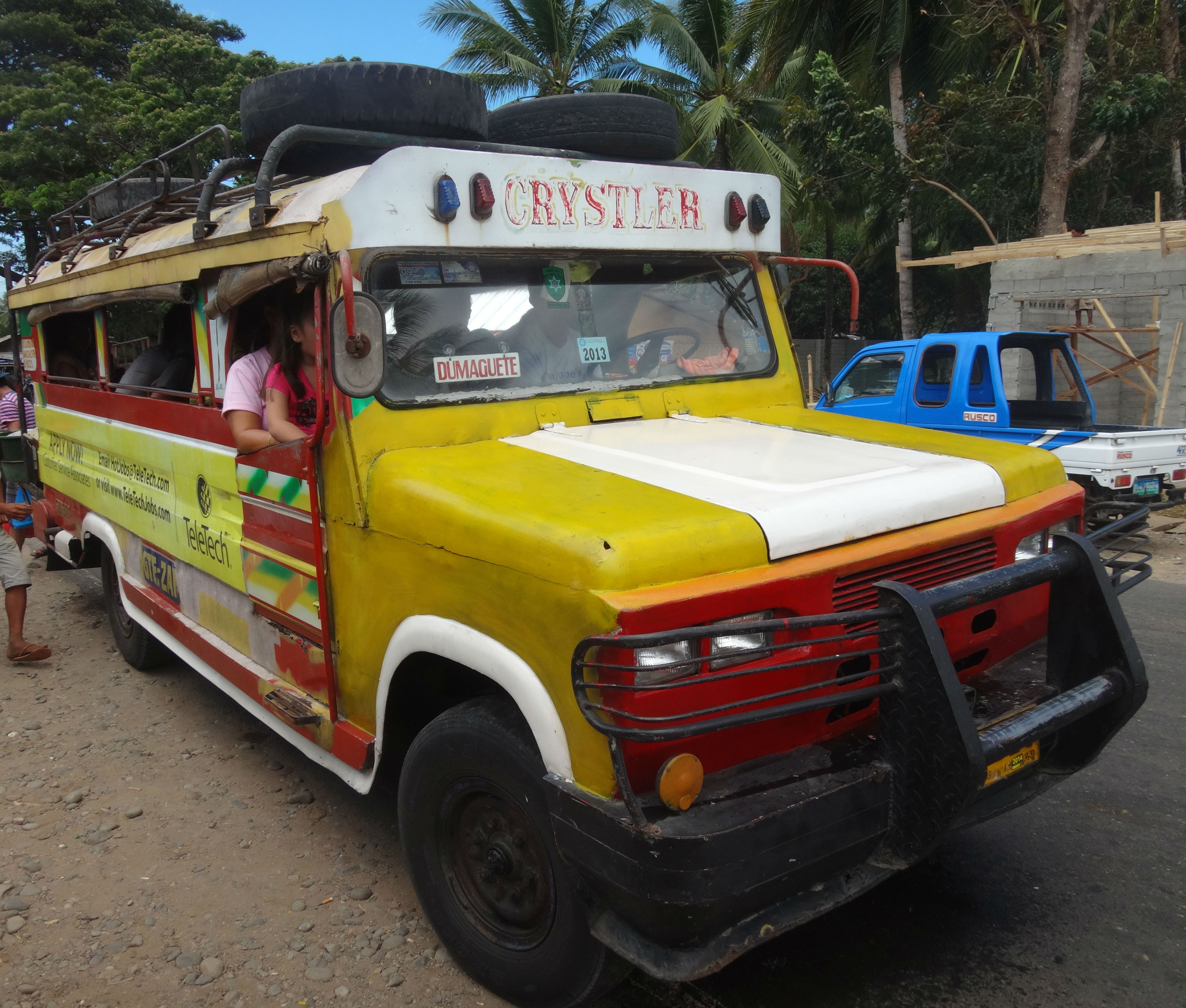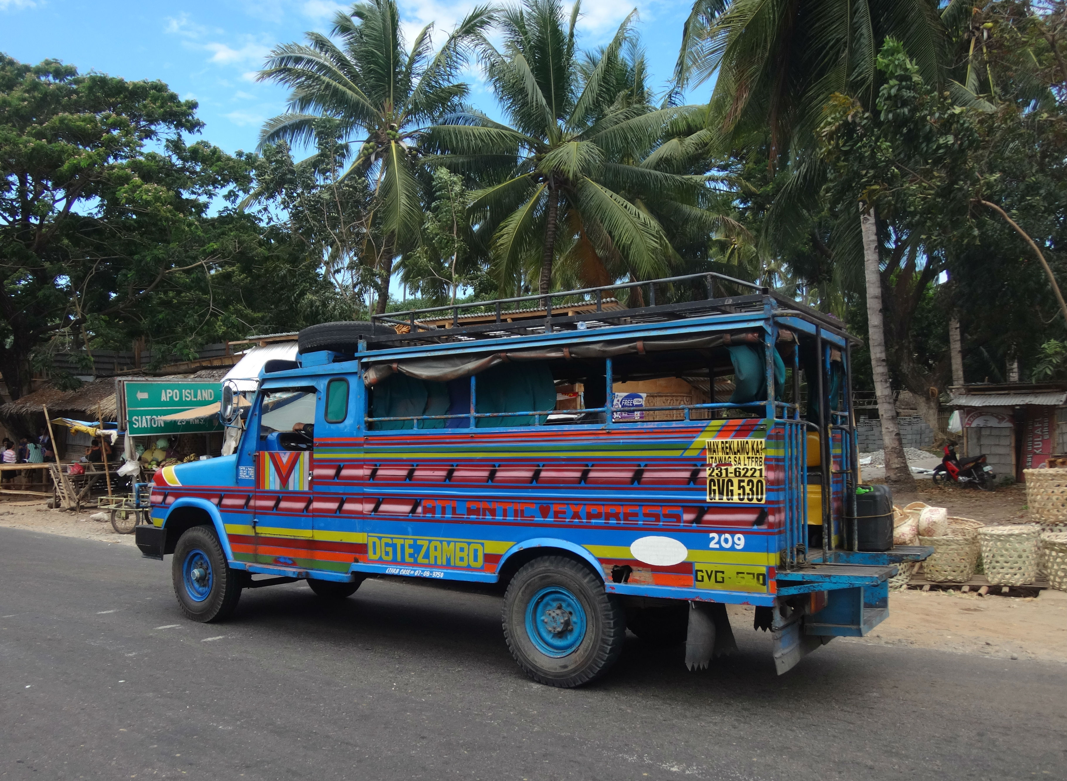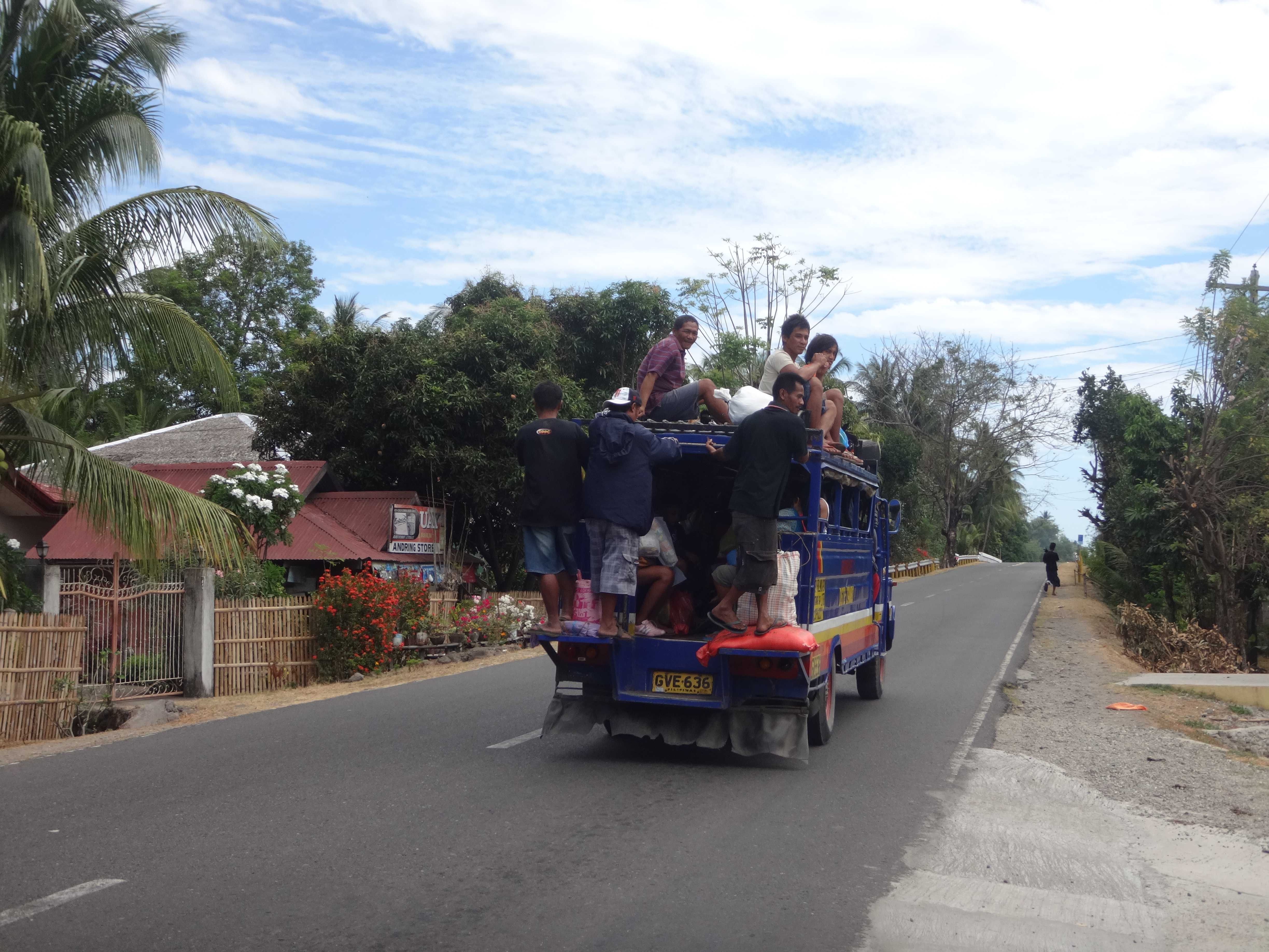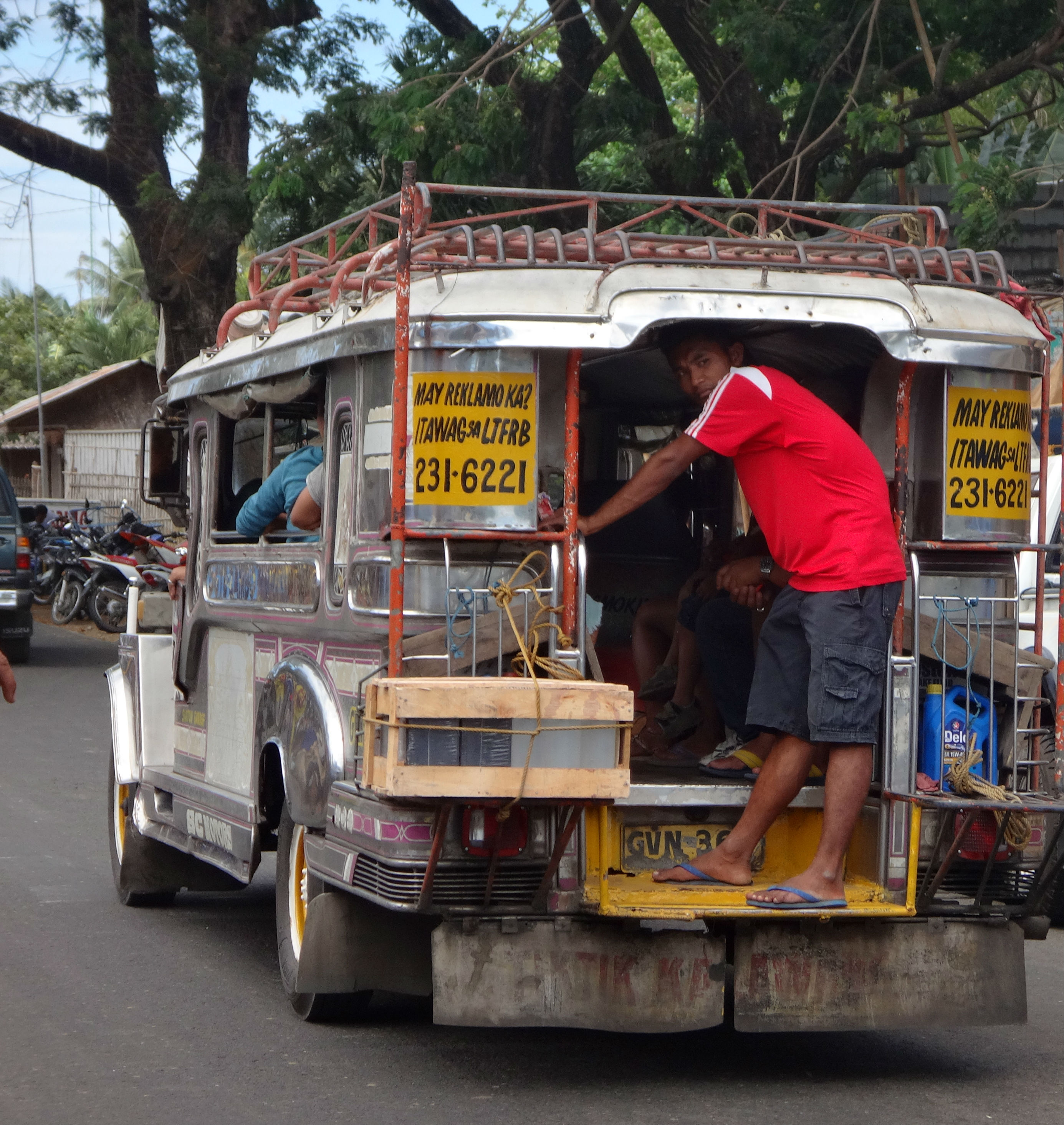 Je ne vous ai pas encore parlé des moyens de transports aux Philippines: d’abord il y a les Jeepneys, sortes de petits camions où tous le monde s’entasse à l’intérieur (ou au dessus ou sur les côtés !):