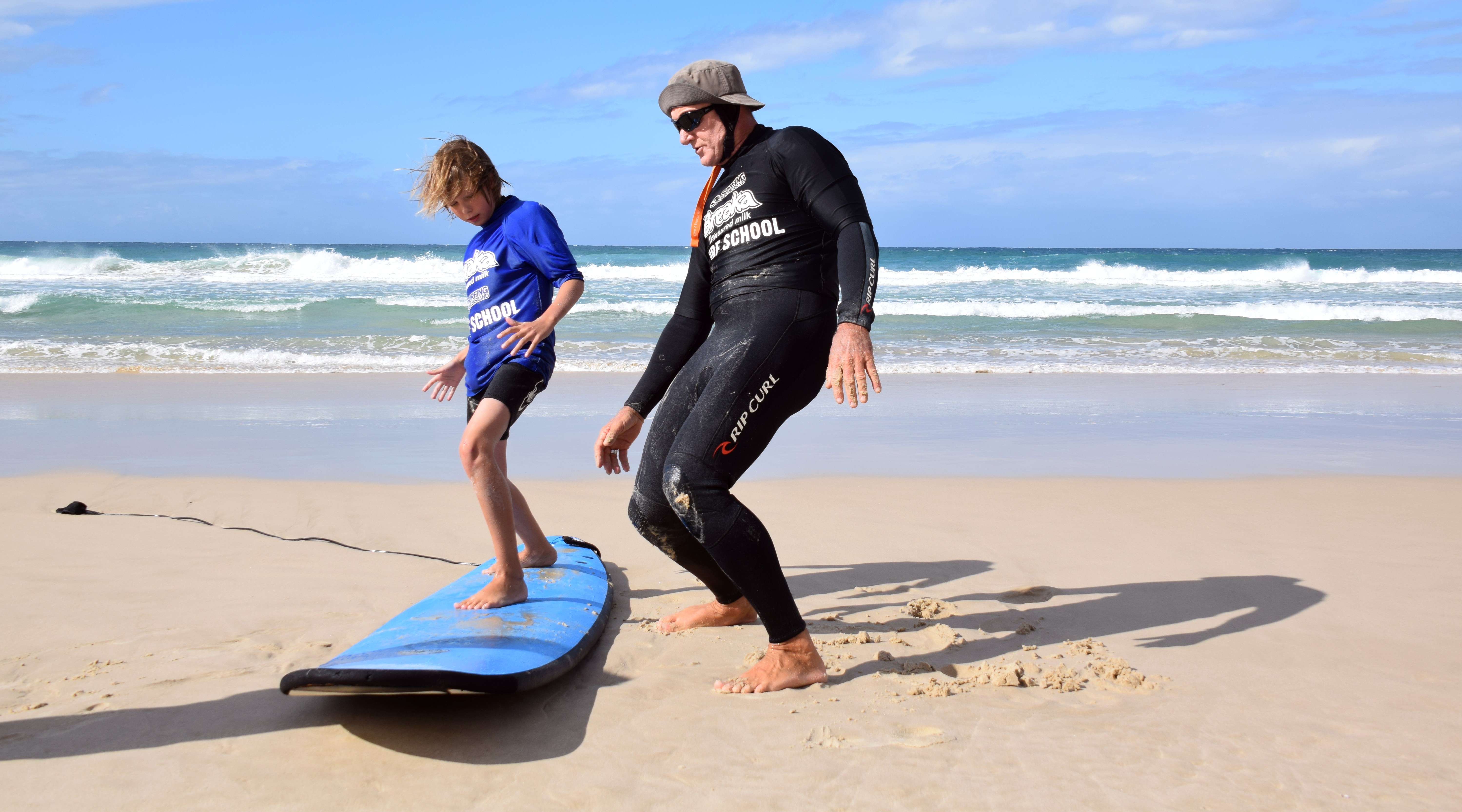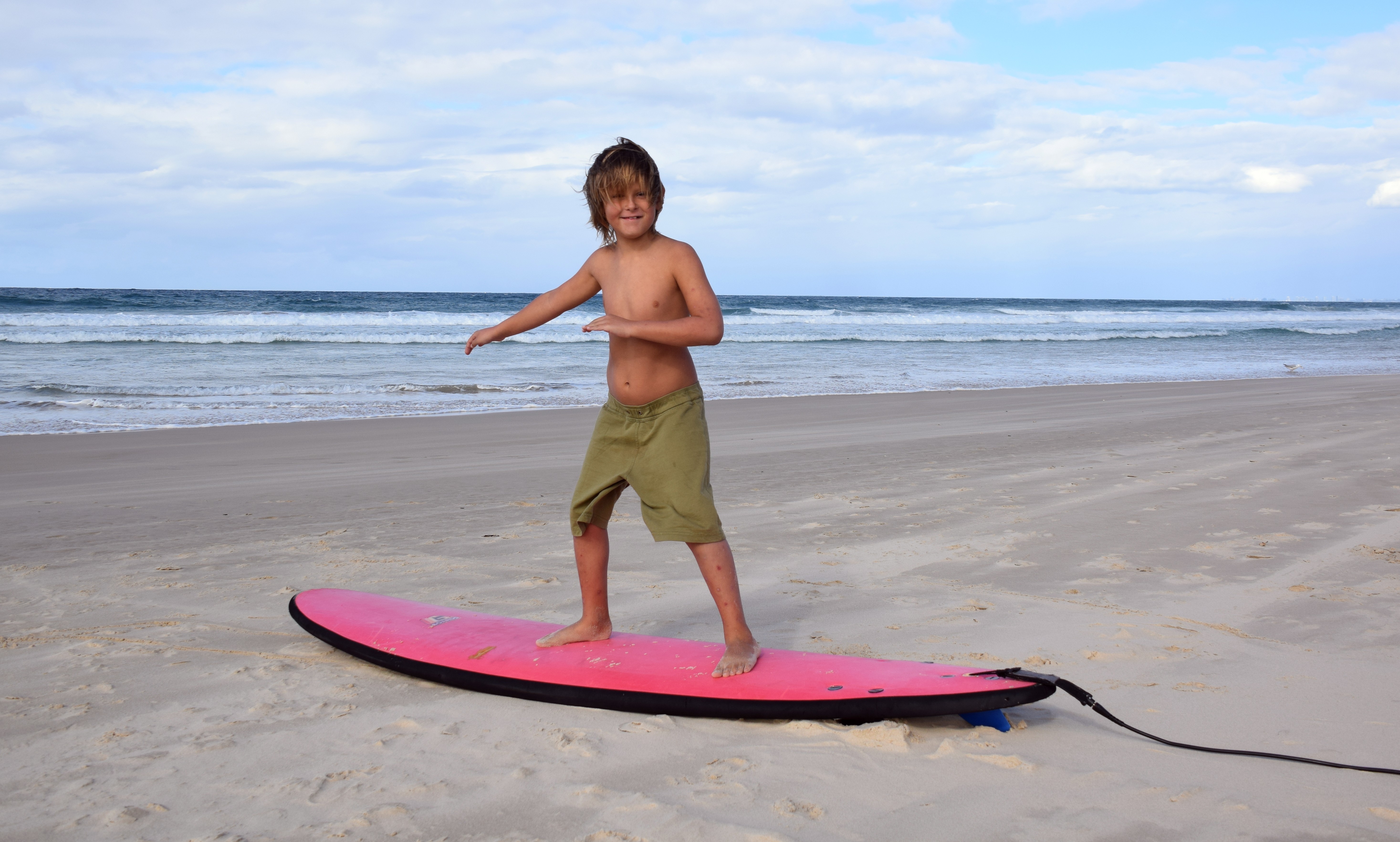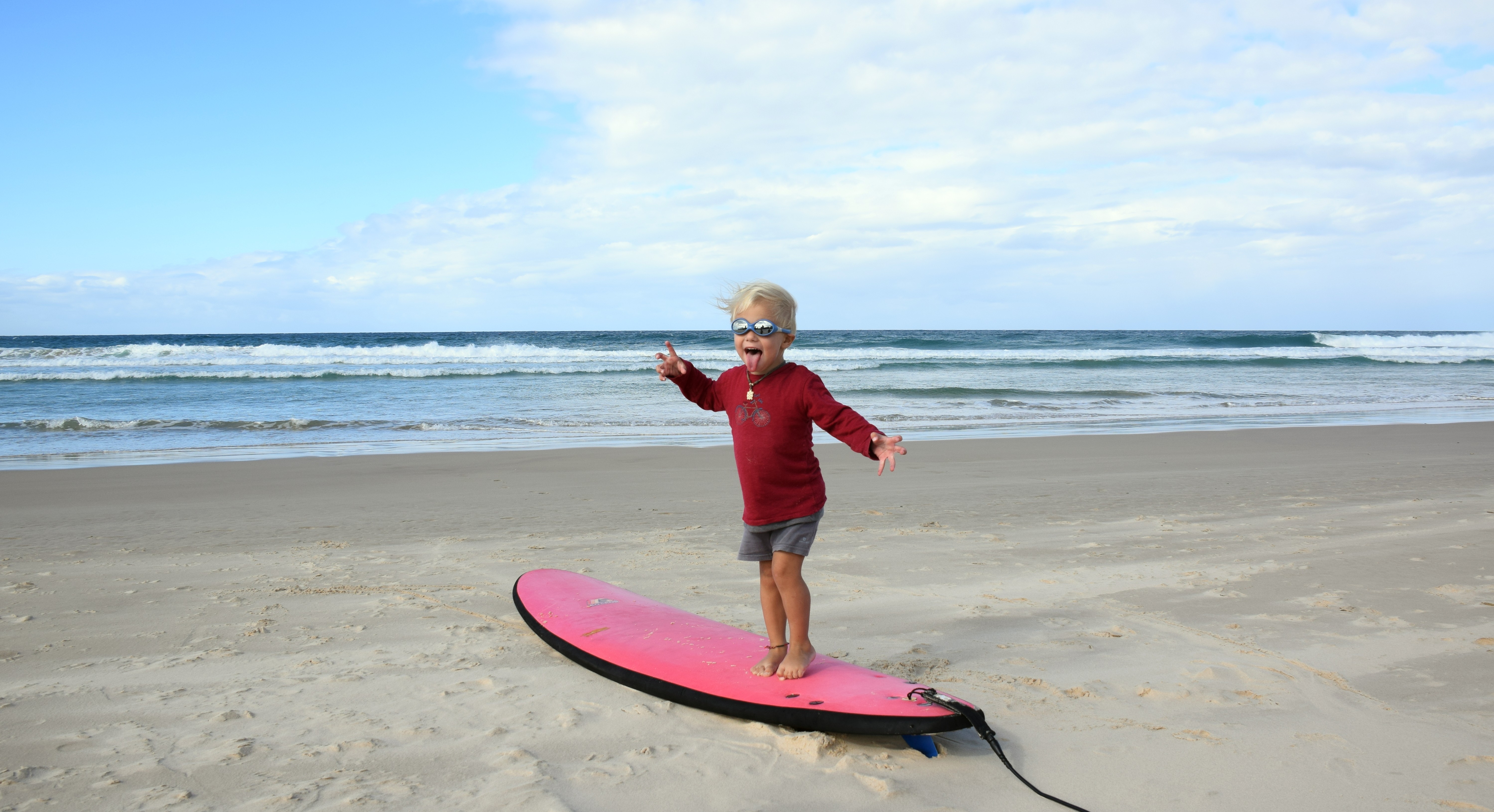 Retour sur la côte pour que Tao prenne sa première leçon de surf, à Surfer Paradise (ça ne s’invente pas !) Cours particulier avec Johnny, un gars bien sympa, très pédagogue ! Tao a adoré mais malheureusement on n’a pas pu lui en offrir d’autres, le froid de l’automne s’est installé dès le lendemain !