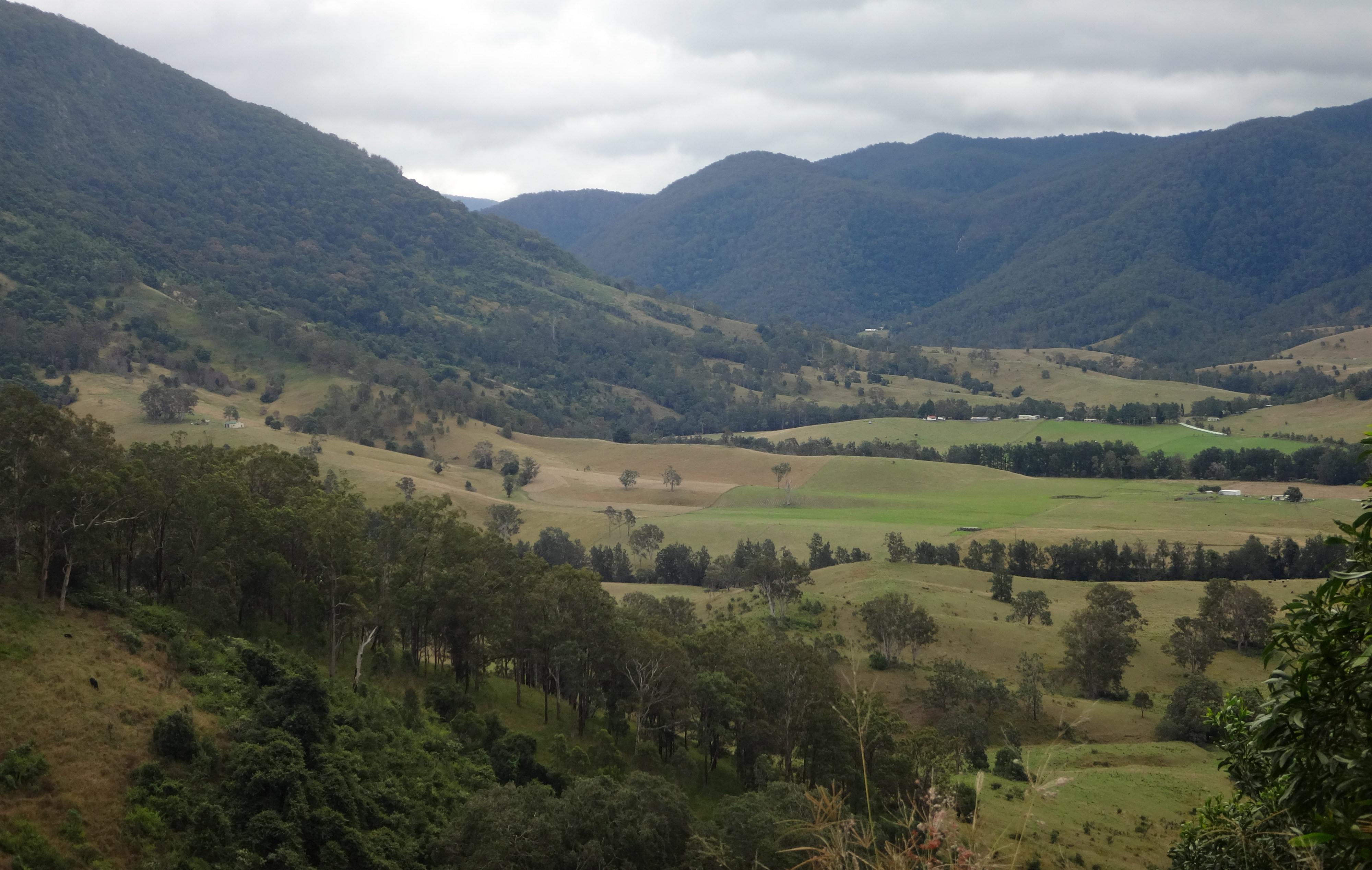 Juste après Coffs Harbour débute la Waterfall Way, un itinéraire routier panoramique qui passe par tous les types de parcs nationaux classés par l’Unesco: des fôrets primaires, des prairies avec des vaches à perte de vue, des hautes montagnes, des villages adorables avec de très belles maisons victoriennes. Les érables flamboyants aux couleurs d’automne côtoient des palmiers du voyageurs, incroyable ! A mi-parcours débute la région de la Nouvelle Angleterre, c’est vrai que sur plusieurs dizaines de kilomètres on s’y croyait, même la météo s’y est mise: pluie et froid !