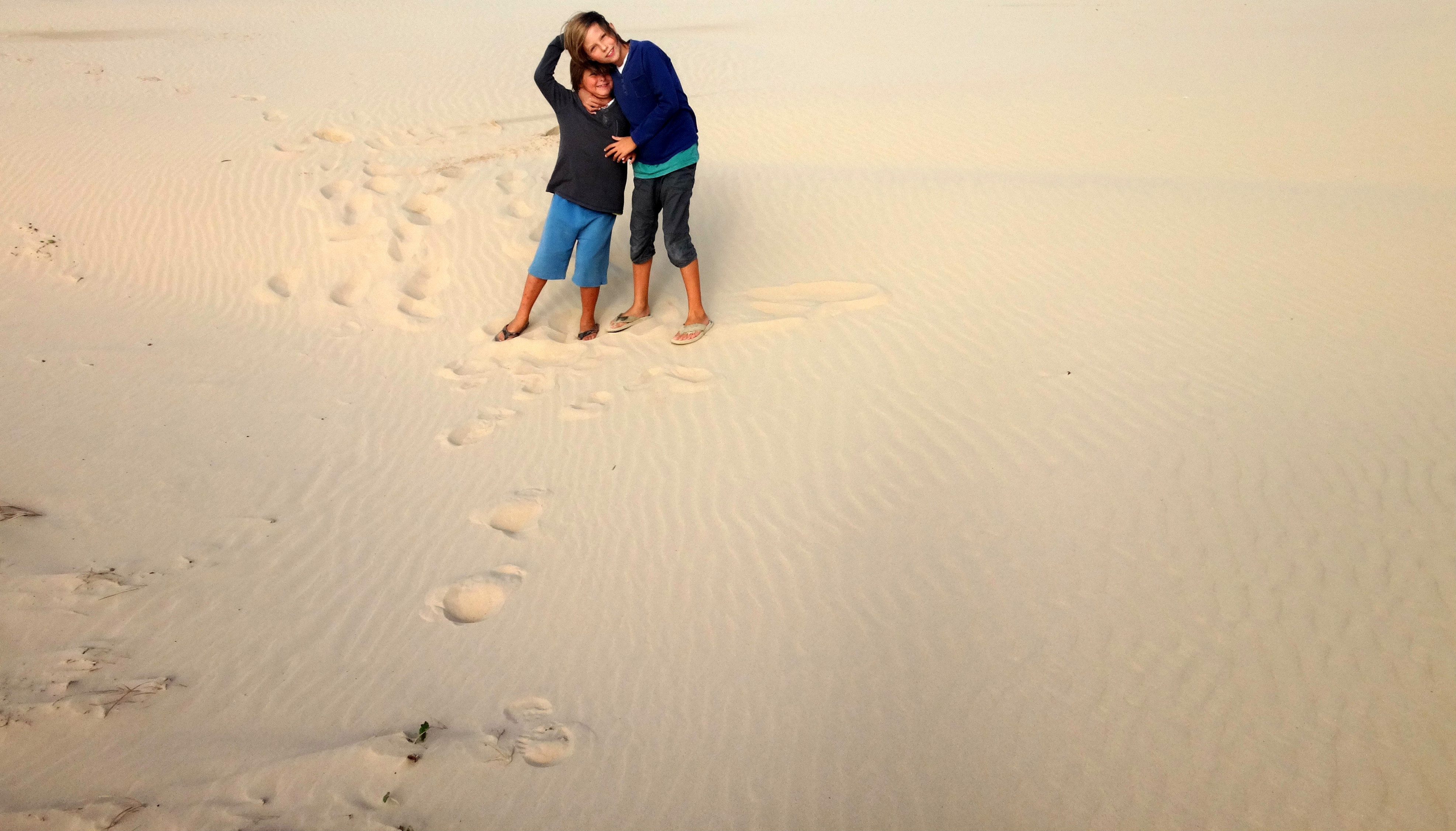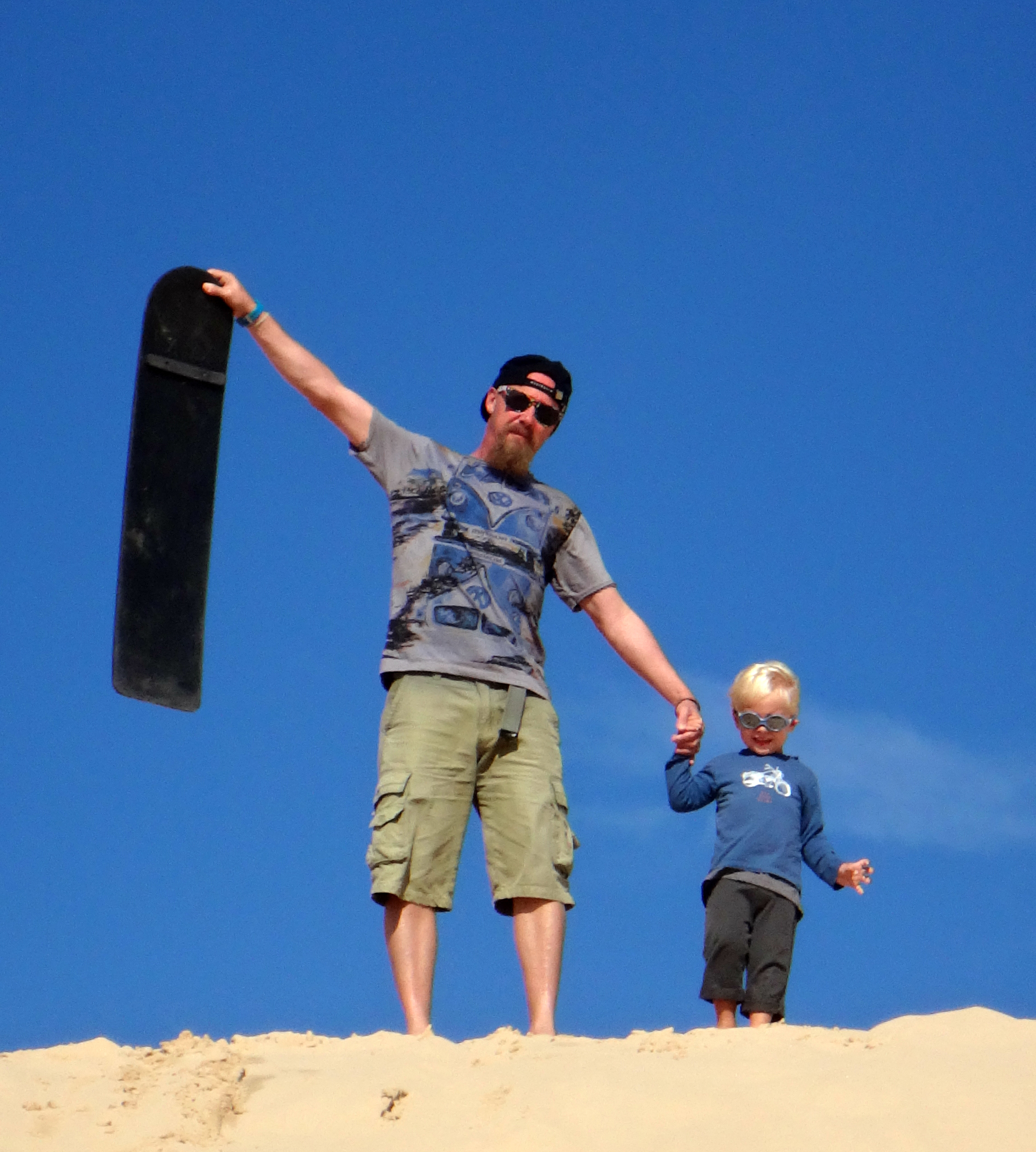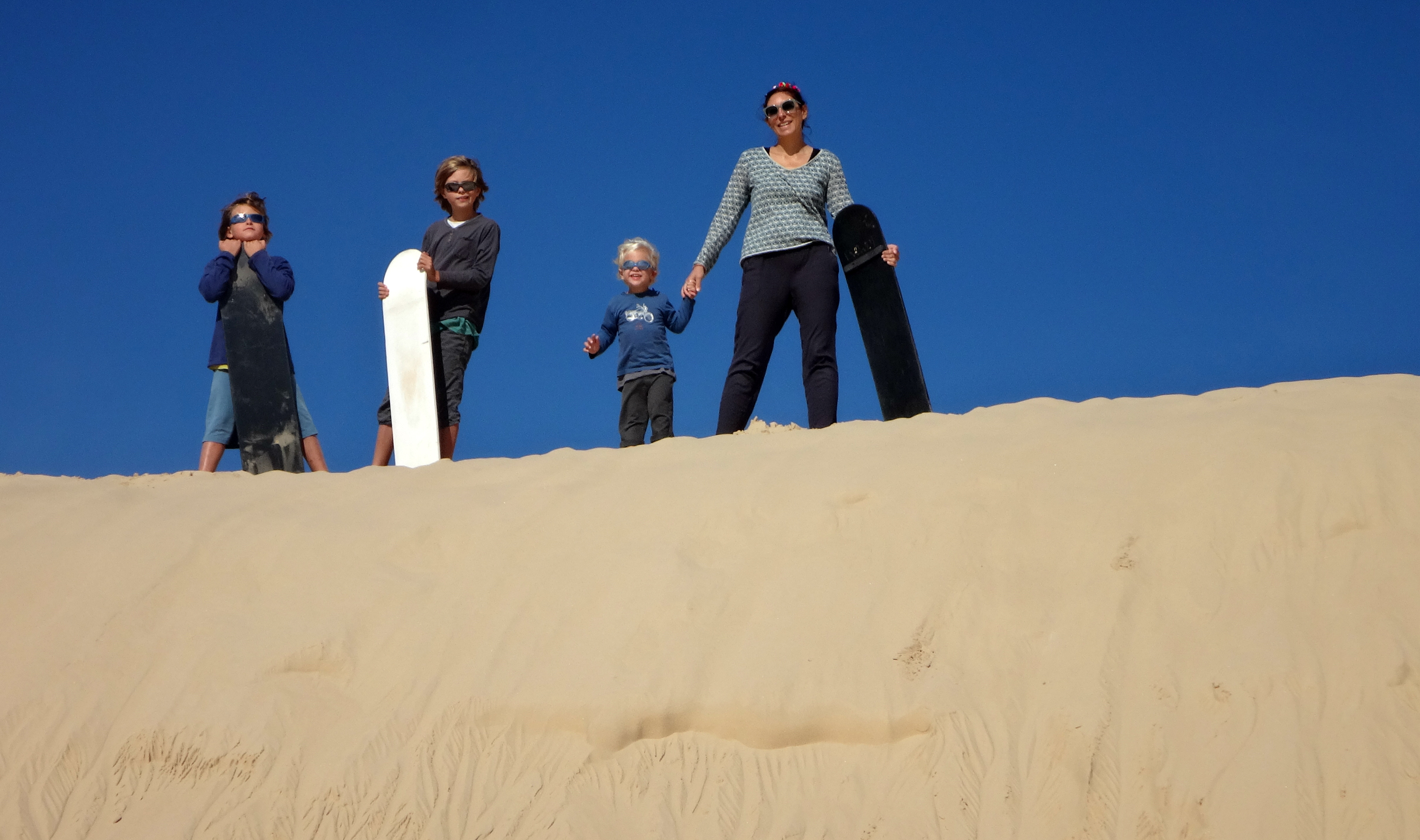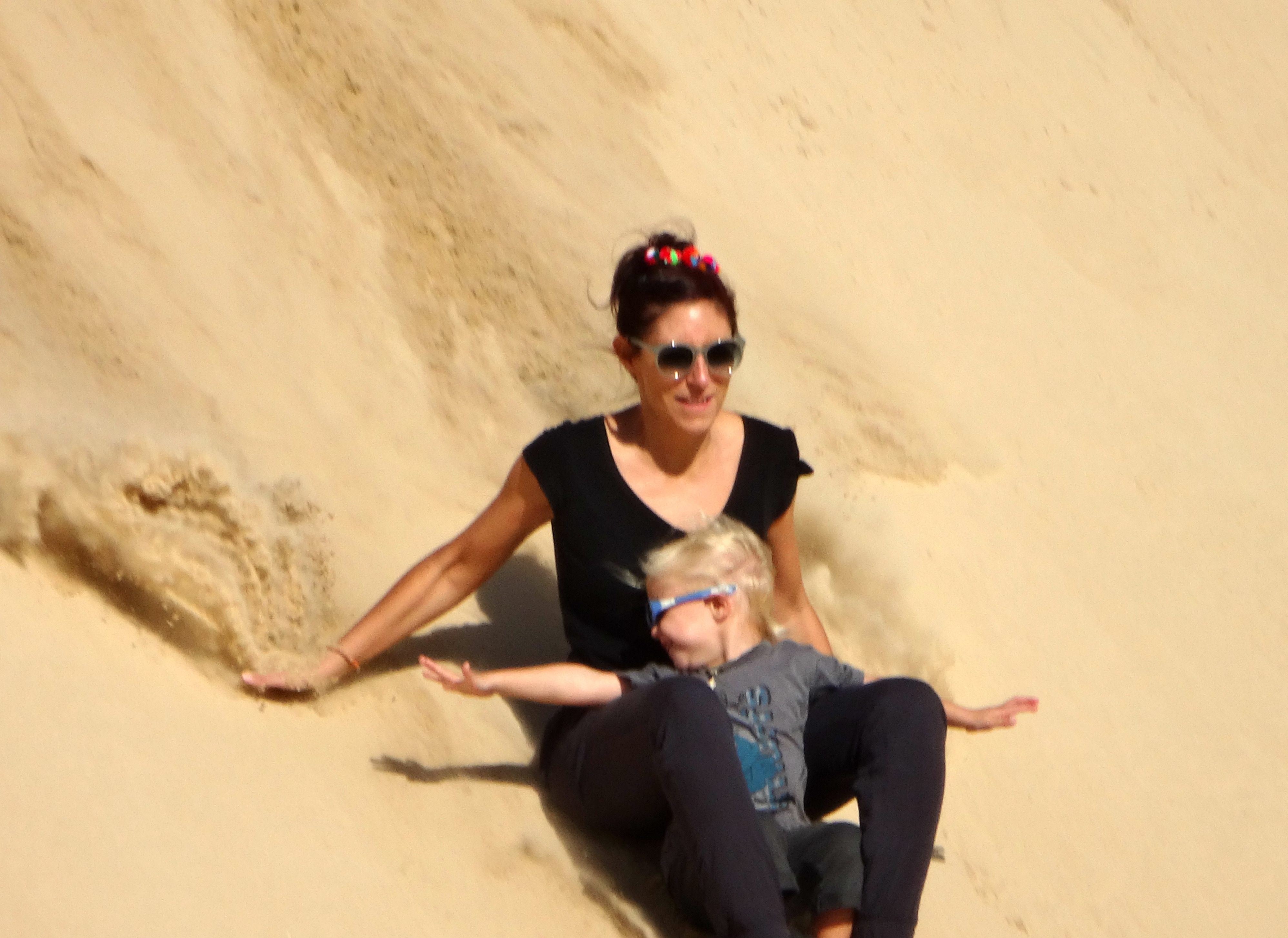 Retour sur la côte pour retrouver un peu de chaleur, direction Anna Bay pour aller aux Worimi Conservation Lands, ce sont les dunes de sables mouvantes les plus longues de l’hémisphère Sud, elles appartiennent au peuple aborigène Worimi qui en gère l’accès. A certains endroits on ne voit plus la plage, on se serait crus en plein Sahara ! Pour aller au milieu de ces dunes nous avons pris un mini-bus 4X4, et histoire de rigoler un peu on a fait du Sandboard, une planche hybride qui permet d’aller super vite !
