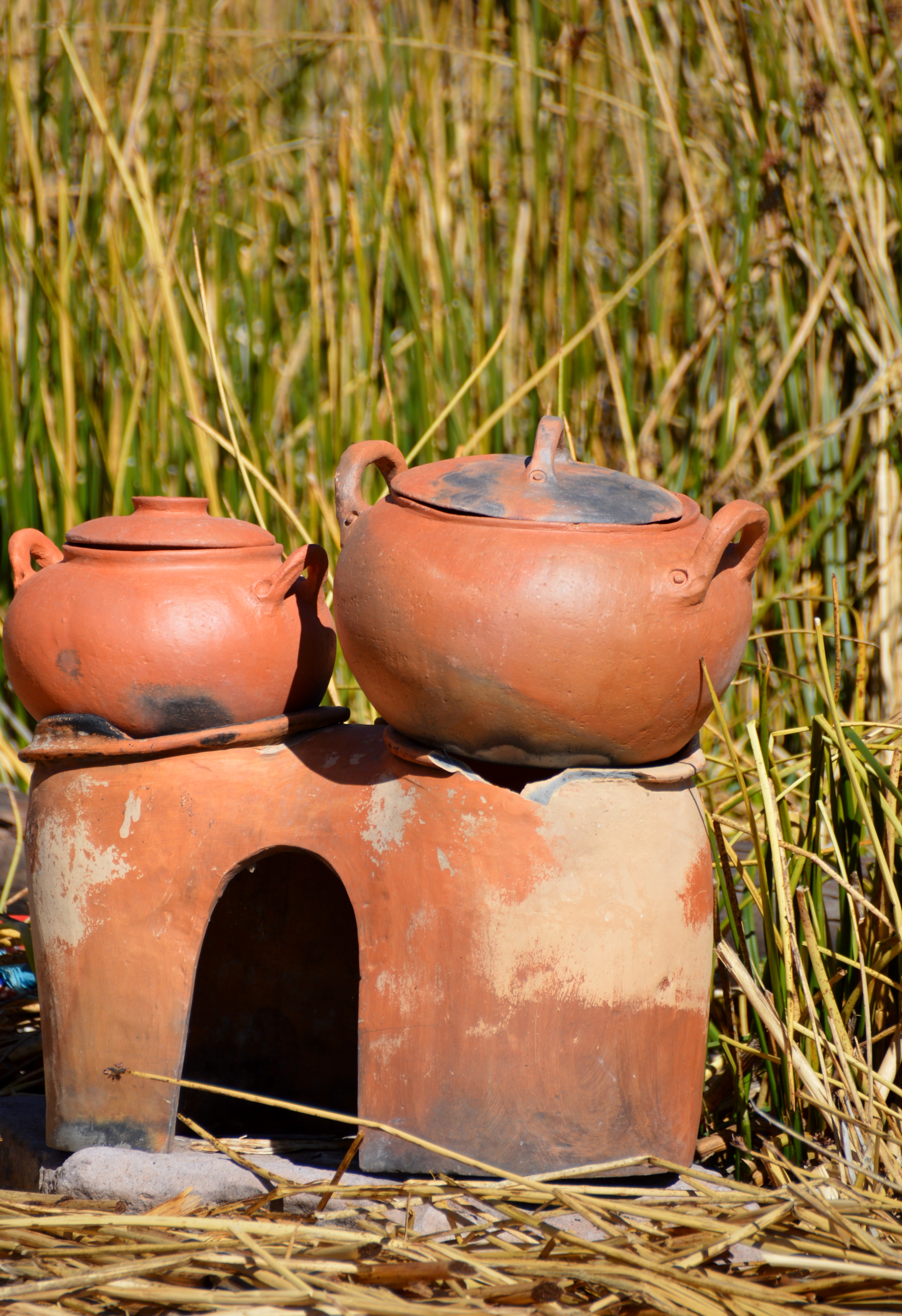Sur les îles chaque famille a une maison en totora, parfois avec un panneau solaire pour la lumière et le chauffage. Les insulaires boivent l’eau du lac (filtrée), vivent grâce au tourisme, à la pêche et à l’élevage de canards et de cochons d’Inde (ils les mangent ici, on en reparlera !). Il y a trois écoles dans les Uros, les enfants y vont en barque !