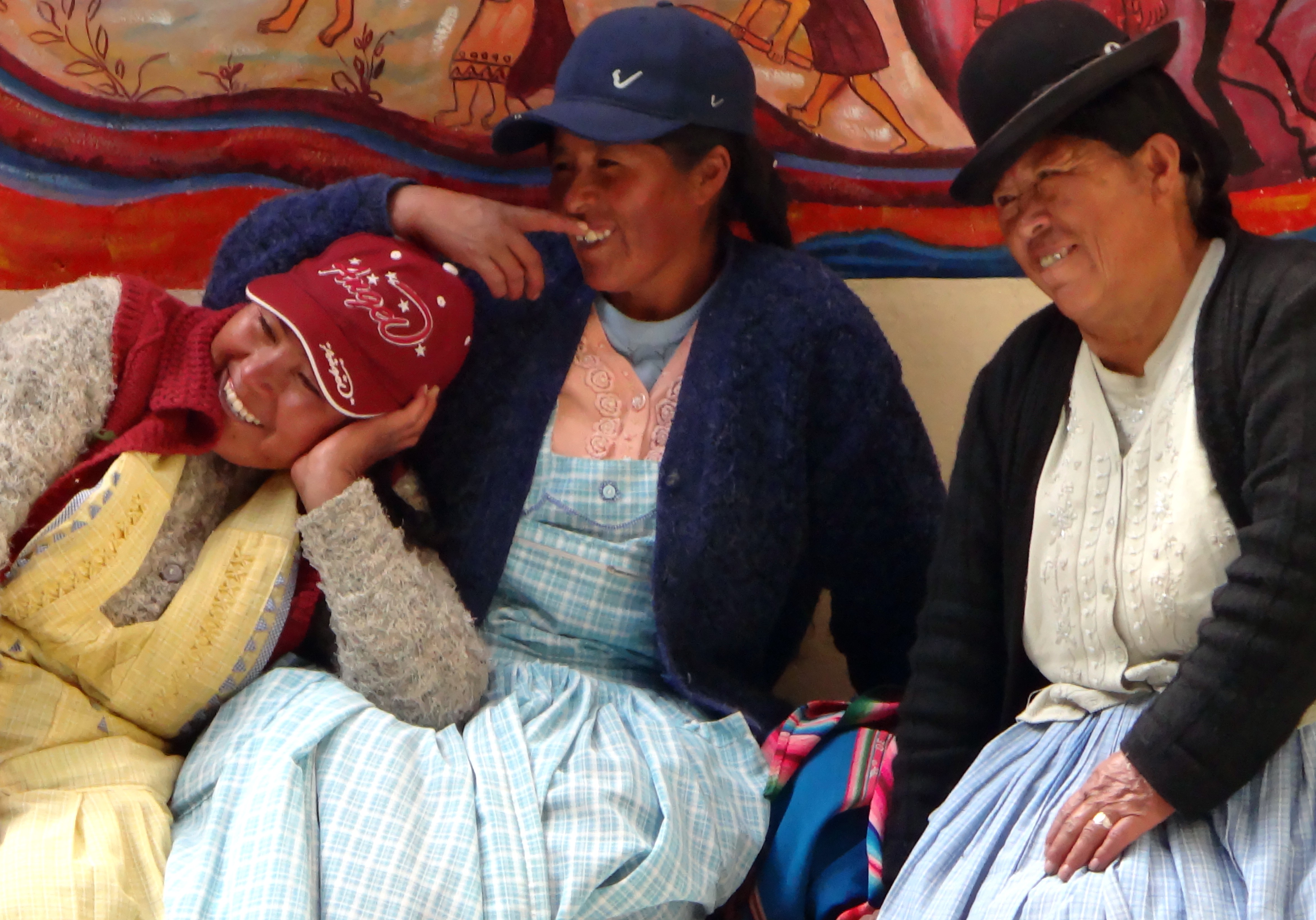 – Les costumes traditionnels des péruviennes avec leurs chapeaux melon, leurs jupons et les tissus colorés qui leur servent à porter tout et n’importe quoi…mais en général leurs enfants !