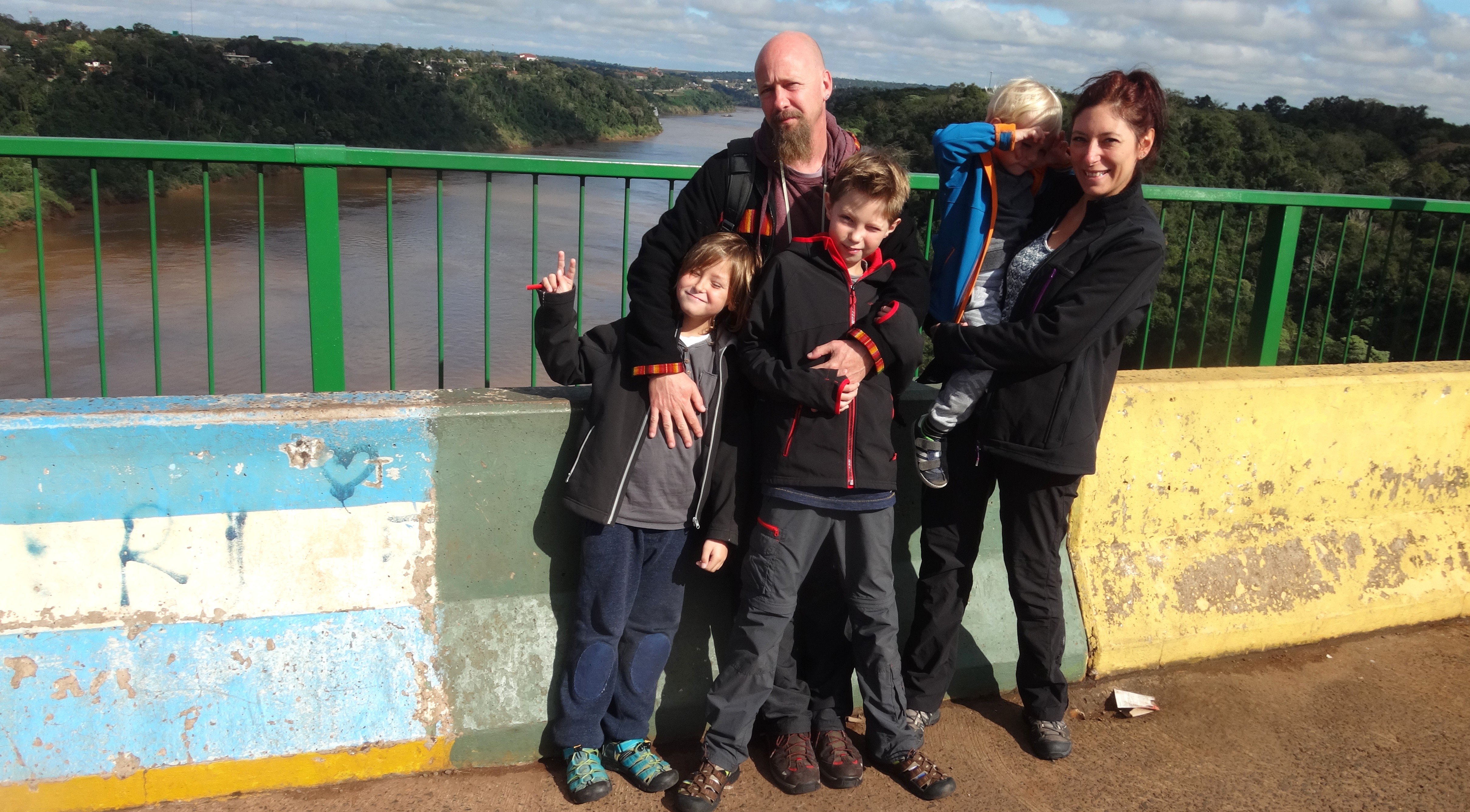 Le lendemain nous sommes passés en Argentine le temps d’une journée ! La frontière est symbolisée sur le pont qui enjambe le Rio Iguaçu par un changement de couleurs, à gauche le Brésil en vert et jaune et à droite l’Argentine en bleu et blanc: