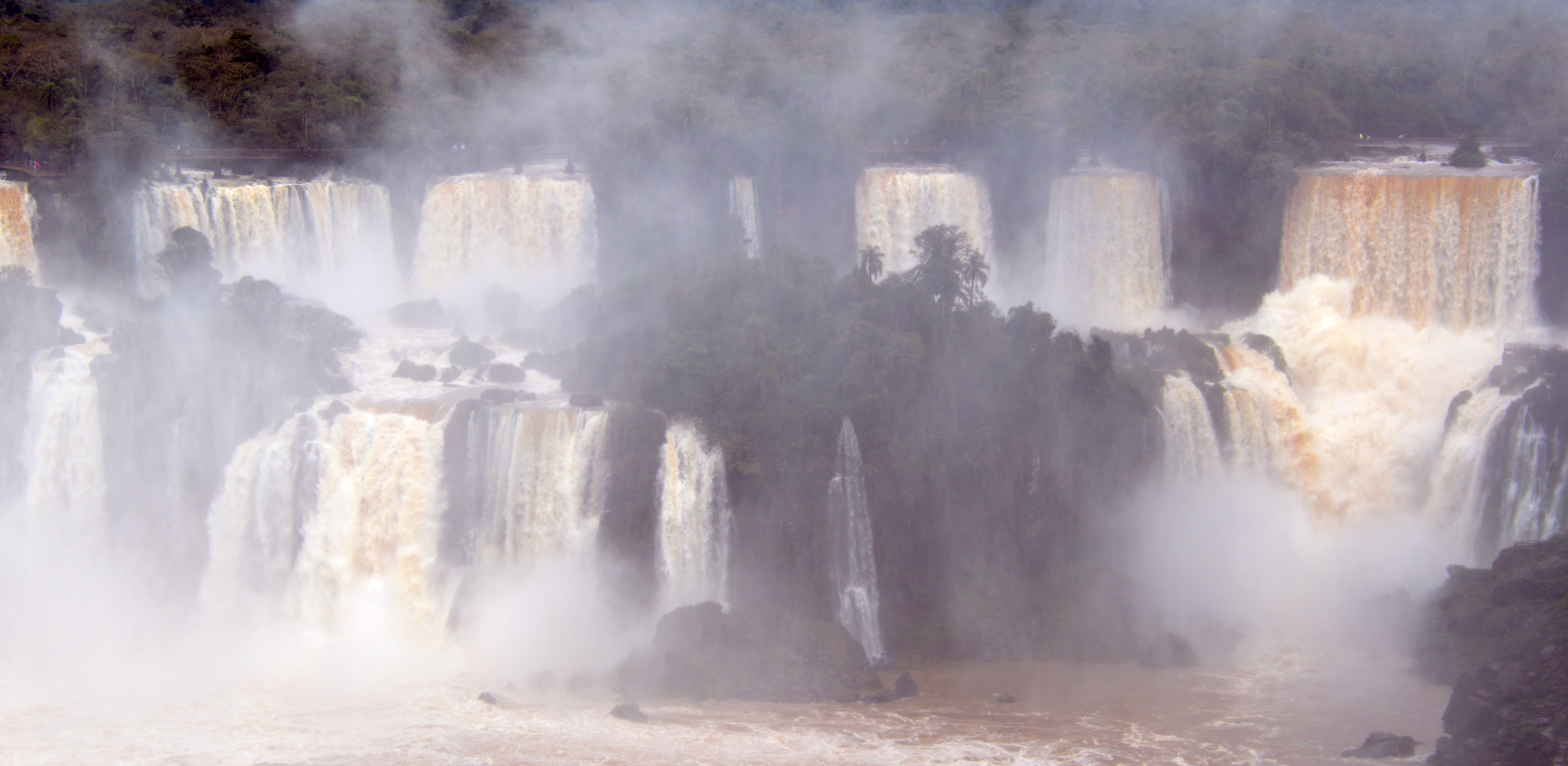 Situées à la frontière de trois pays: le Brésil, l’Argentine et le Paraguay elles comprennent 275 chutes sur un front de plus de 3km de large et 80m de haut ! Elles dépassent les chutes Victoria et celles du Niagara en largeur, en hauteur et même -parait-il- en beauté !