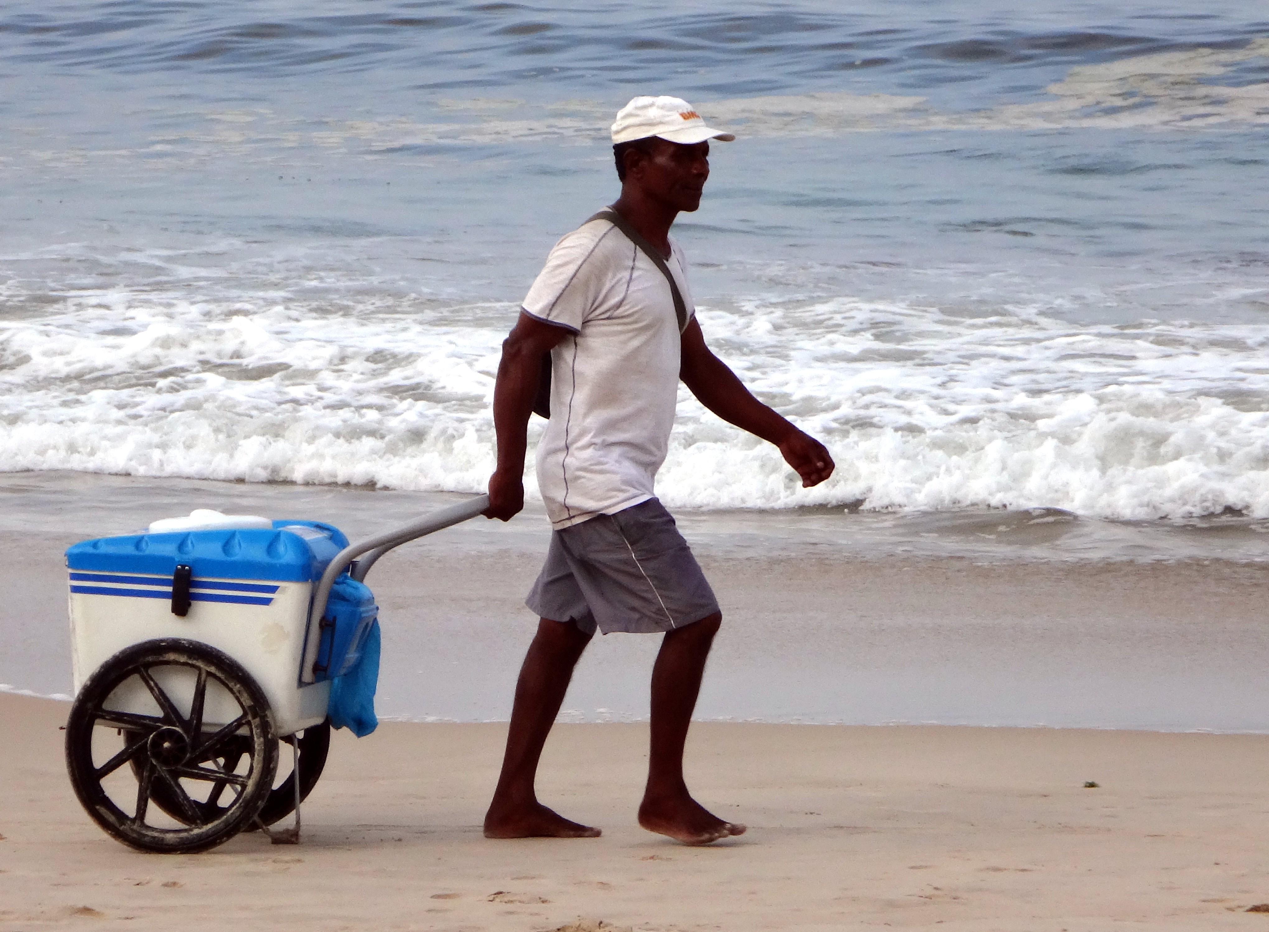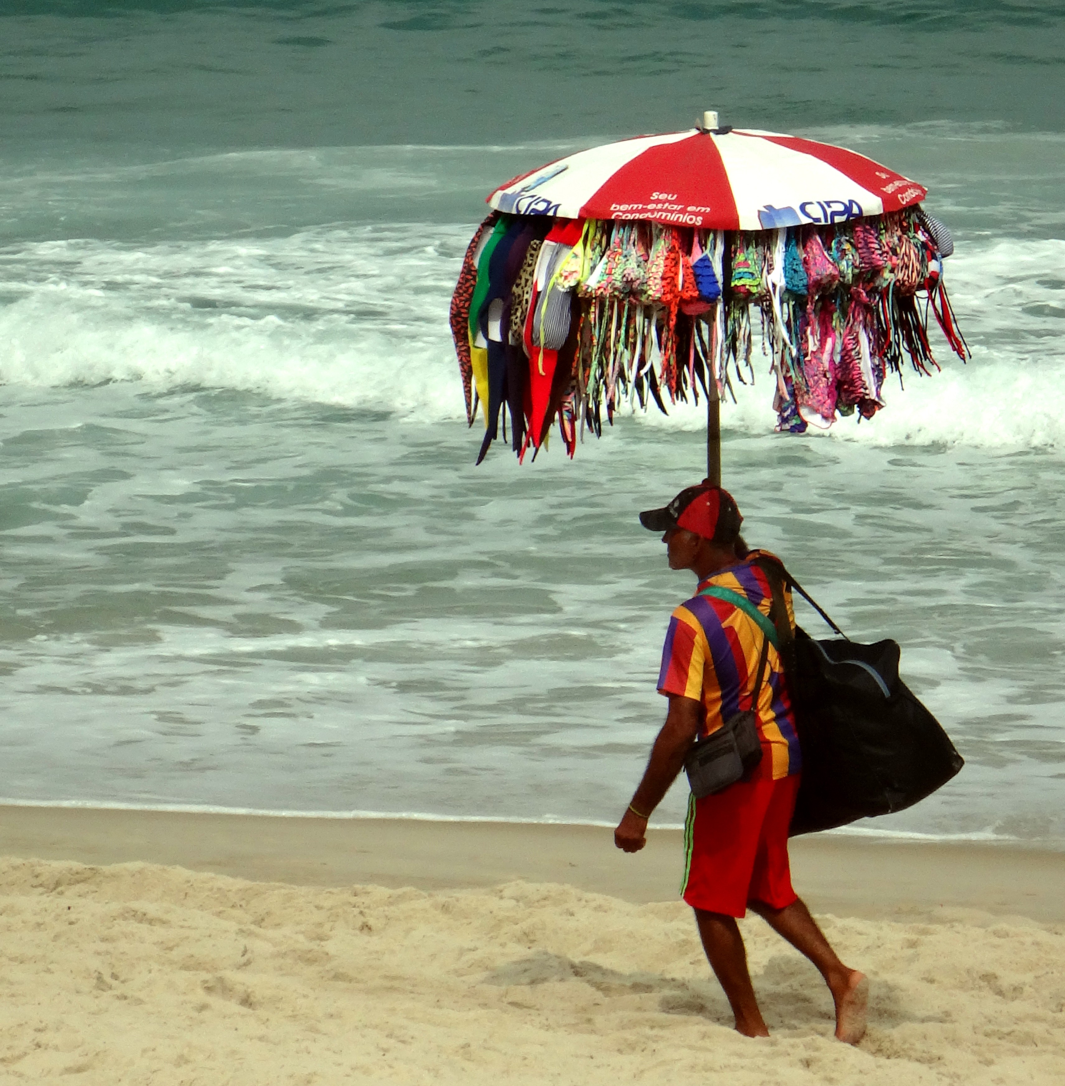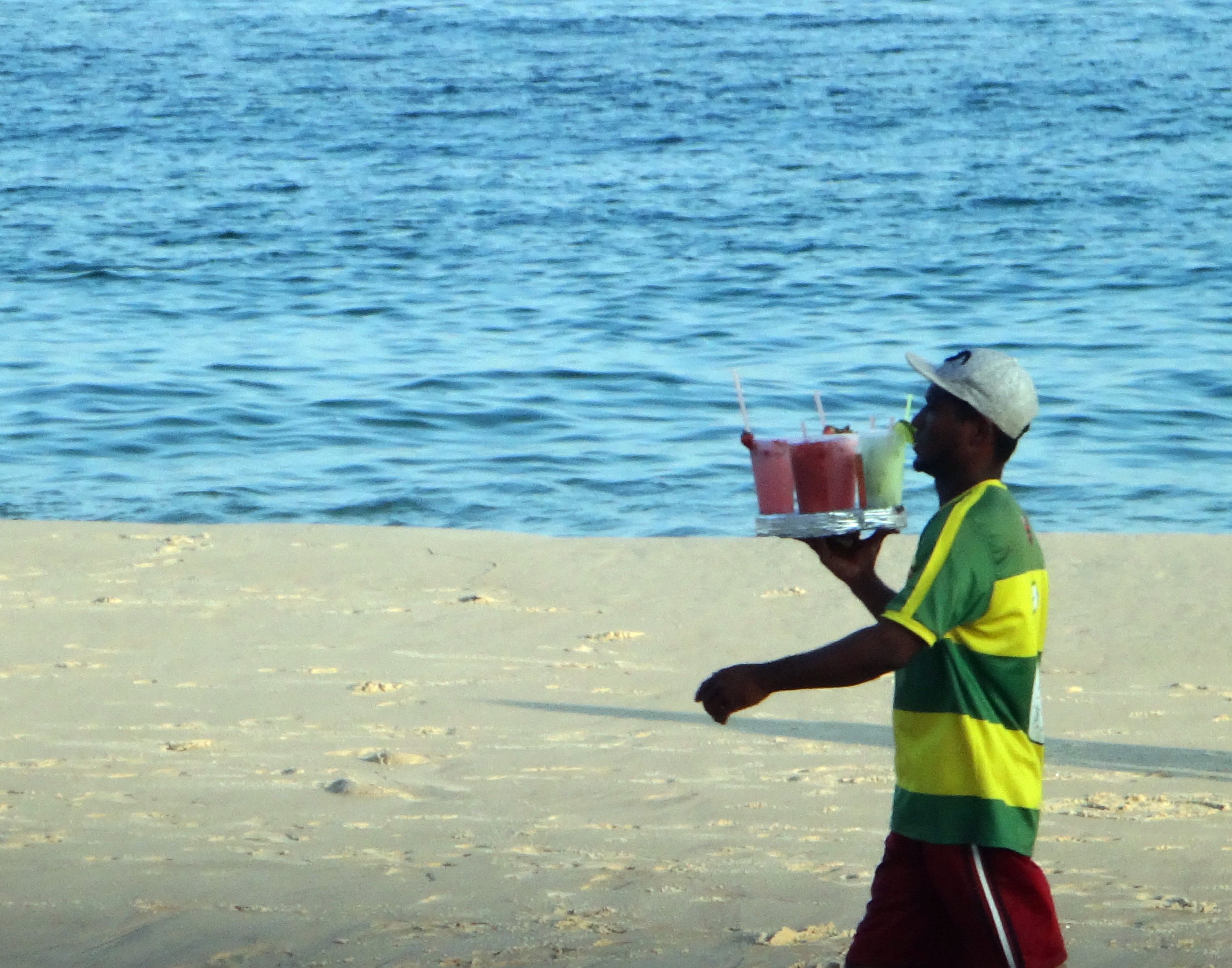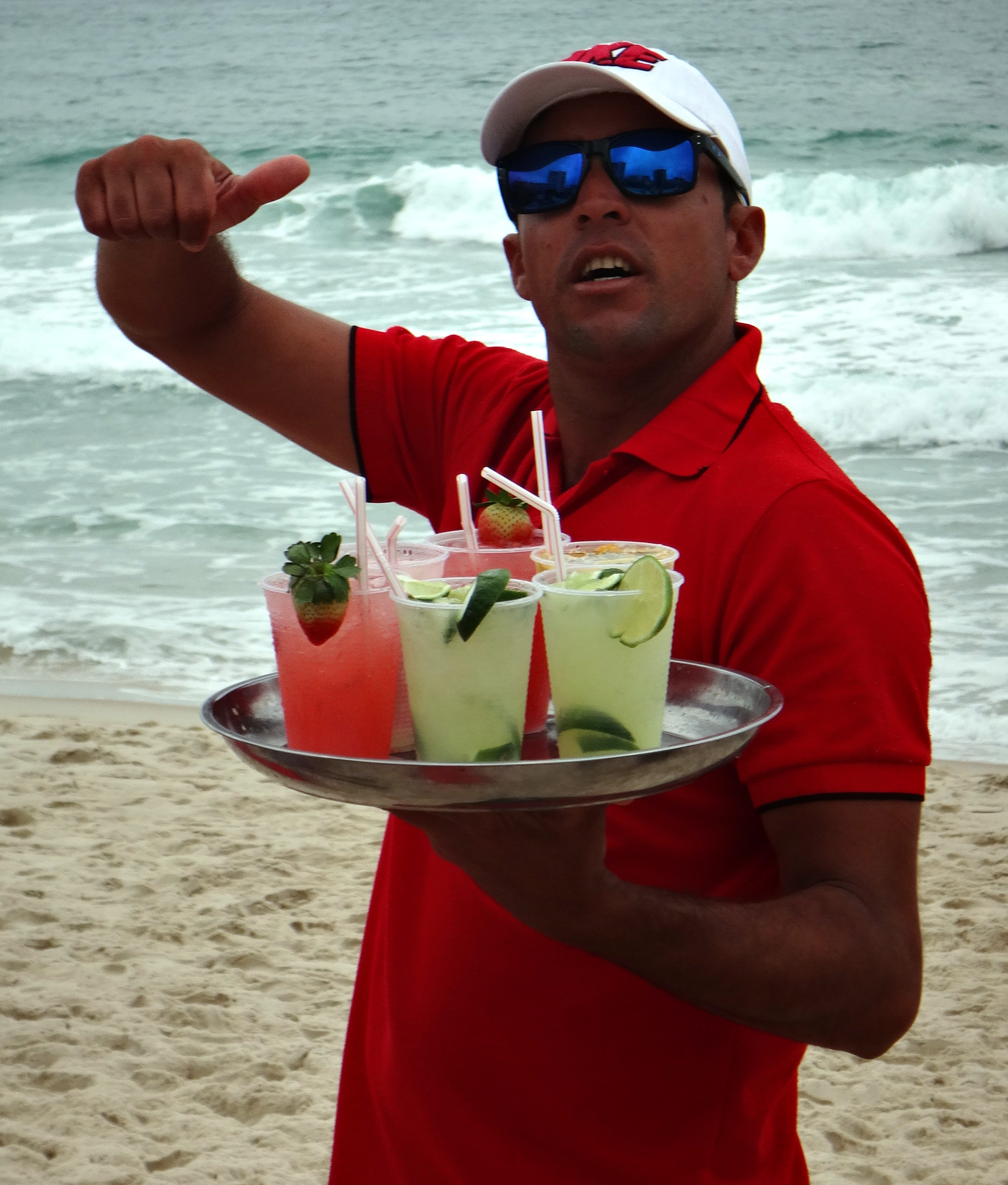Mais notre principale activité de cette semaine a été LA PLAGE ! Et attention c’est le must, il y a des vendeurs ambulants pour à peu près tout ! A peine arrivés on nous propose en vrac: un siège, un parasol, des glaces, des brochettes de crevettes, une Caipirinha (sorte de Ti’Punch brésilien), des maillots de bain, des ballons, de la crème solaire, des bières fraîches à foison et j’en oublie ! Le top quoi…
