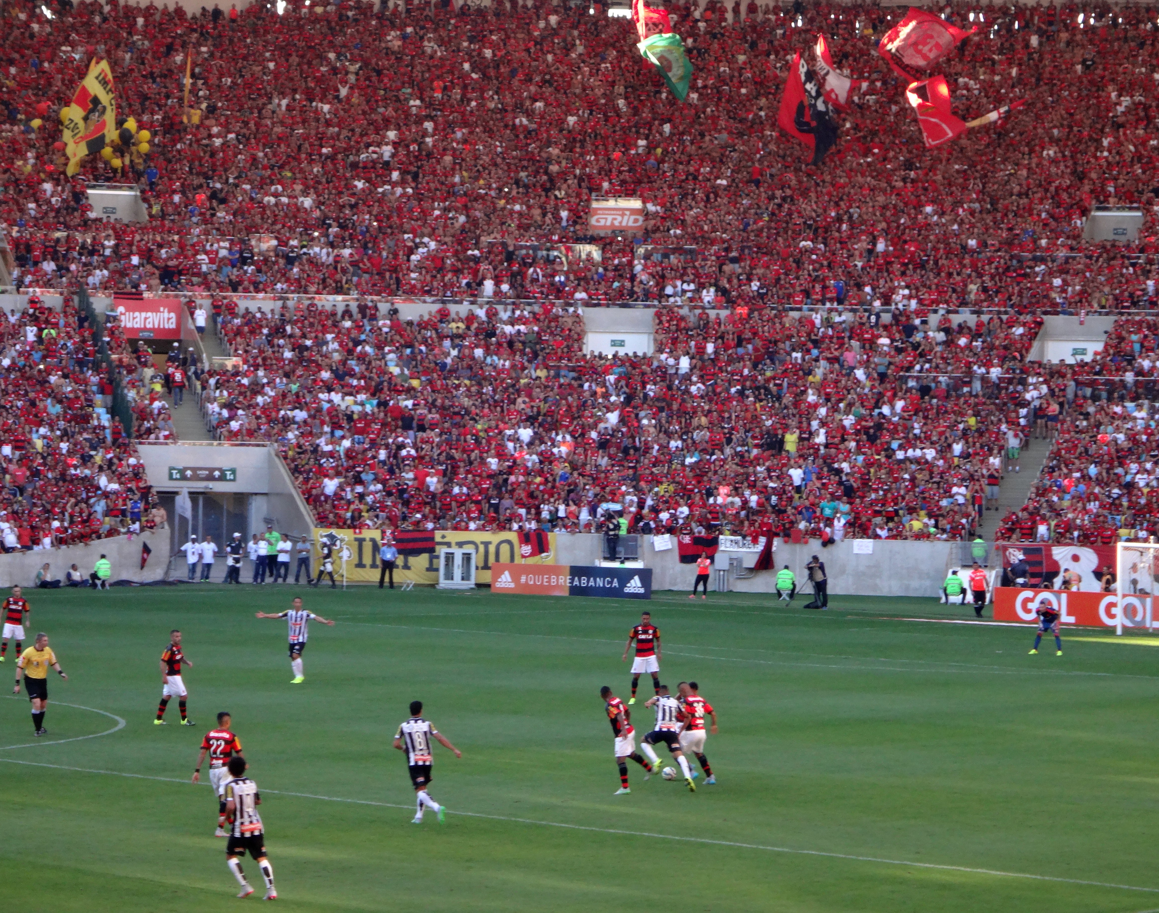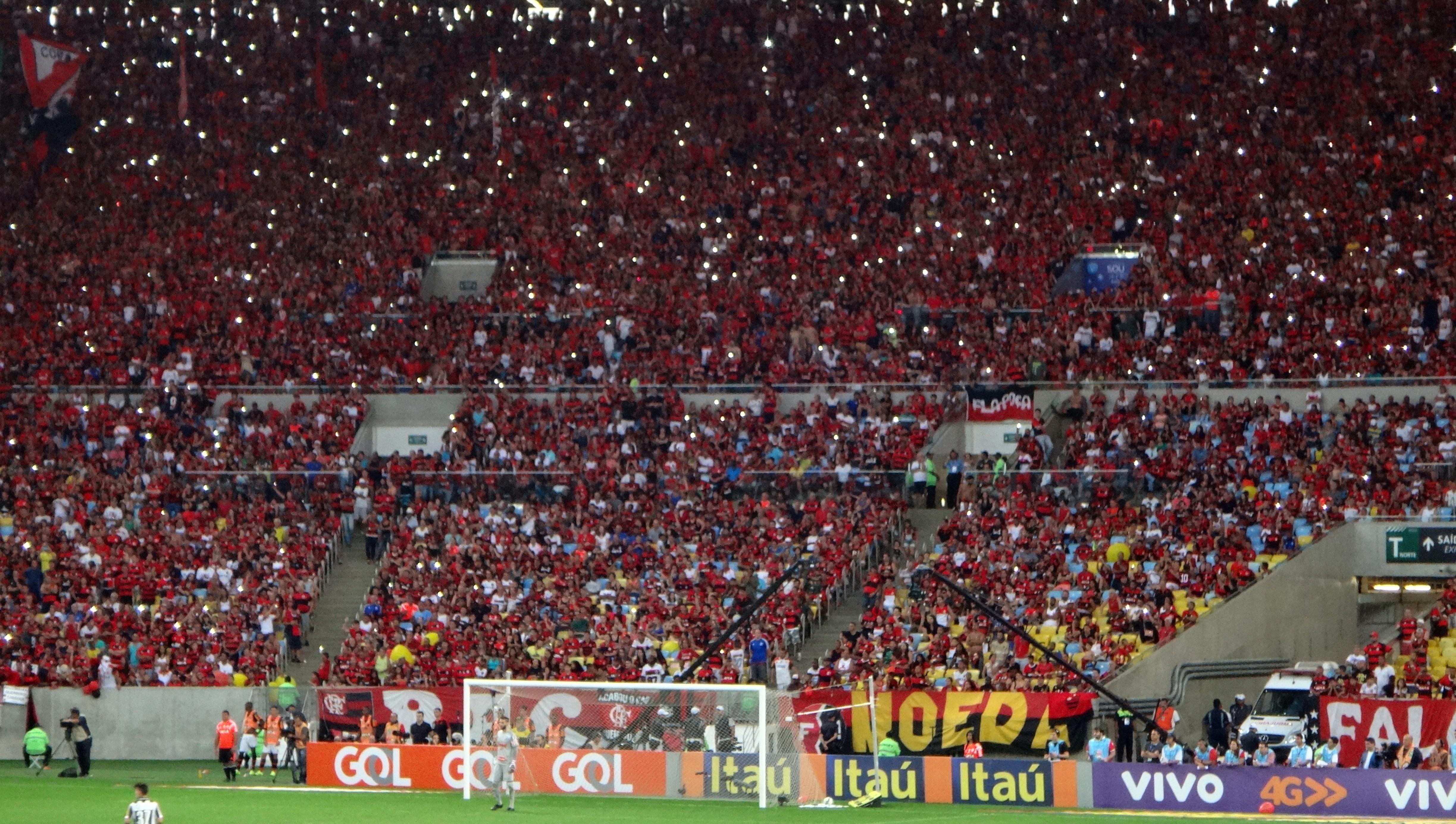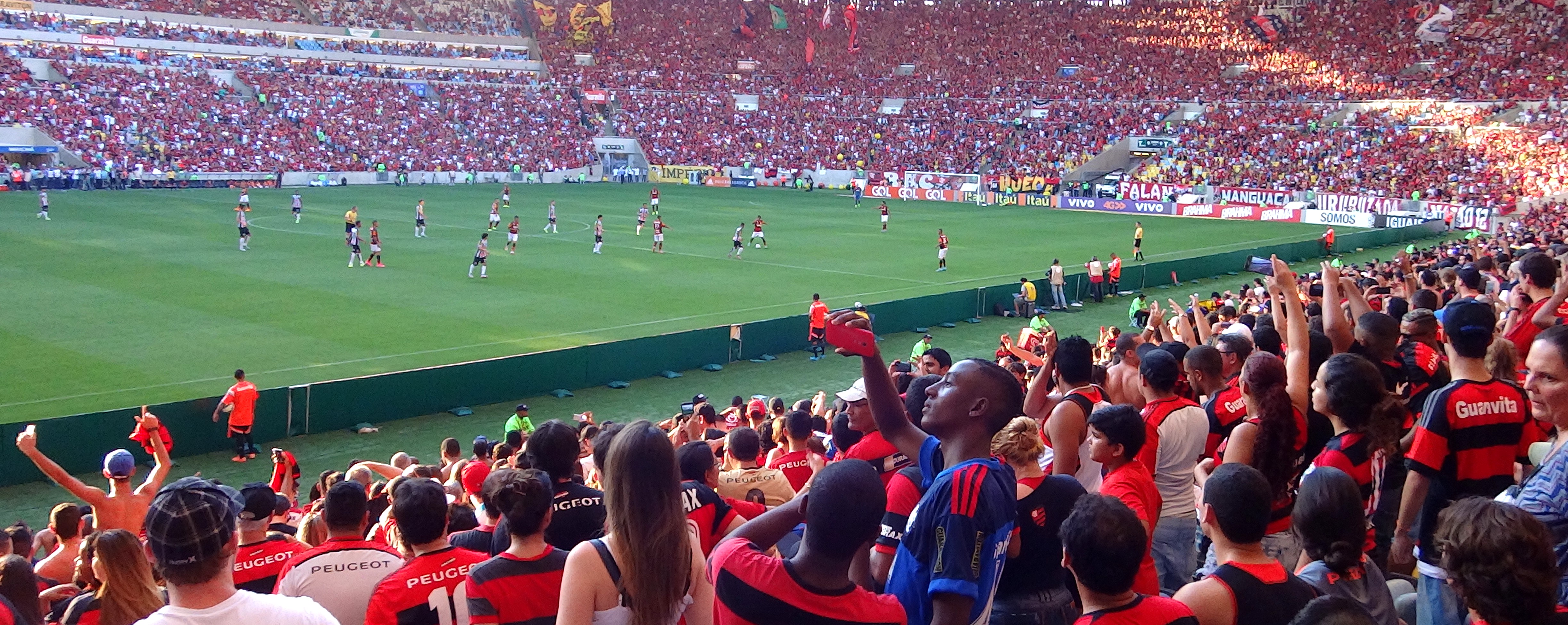 Pendant le match il y a eu de l’action. A chaque fois que Flamengo s’approchait du but tout le monde se levait. Par contre à chaque fois qu’un joueur de Santos avait le ballon tout le monde huait et sifflait ! Et quand Flamengo marquait un but tout le monde est debout et crie GOOOOOOOOOL !!!!