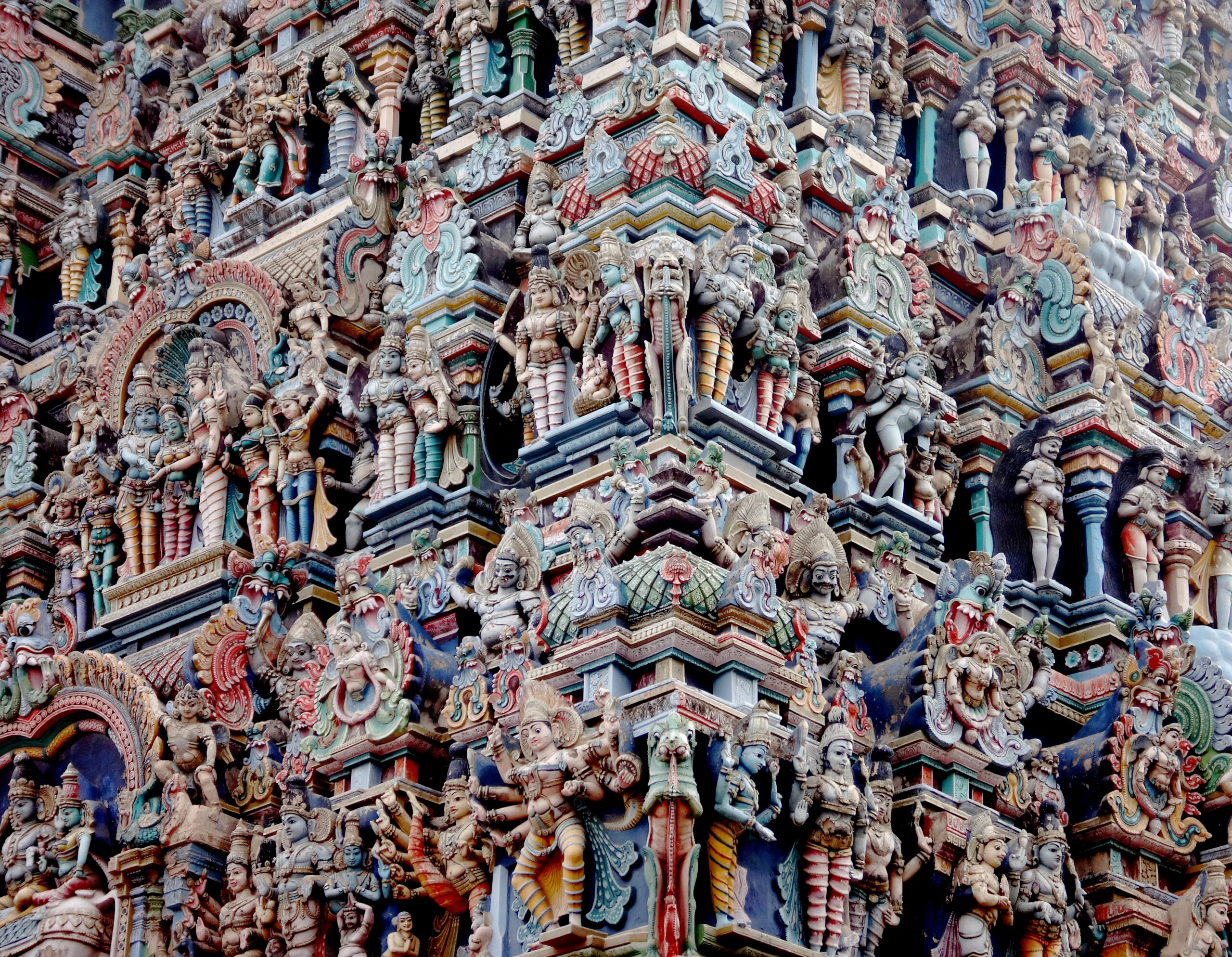 Madurai est donc ce que l’on appelle une ville-temple, situé au centre de la ville le Sri Meenakshi Temple est un des temples en activité les plus importants du pays, il est également un des seuls à être consacré à une déesse (Meenakshi, avatar de Parvati, épouse de Shiva…vous suivez ?!) C’est donc un lieu saint très important où les pèlerins viennent se marier ou se purifier. Ses onze Gopurams hautes de 45 à 60 mètres sont ornées d’environs 33 000 statues d’animaux, de dieux et de démons peintes à la main, impressionnant !!!