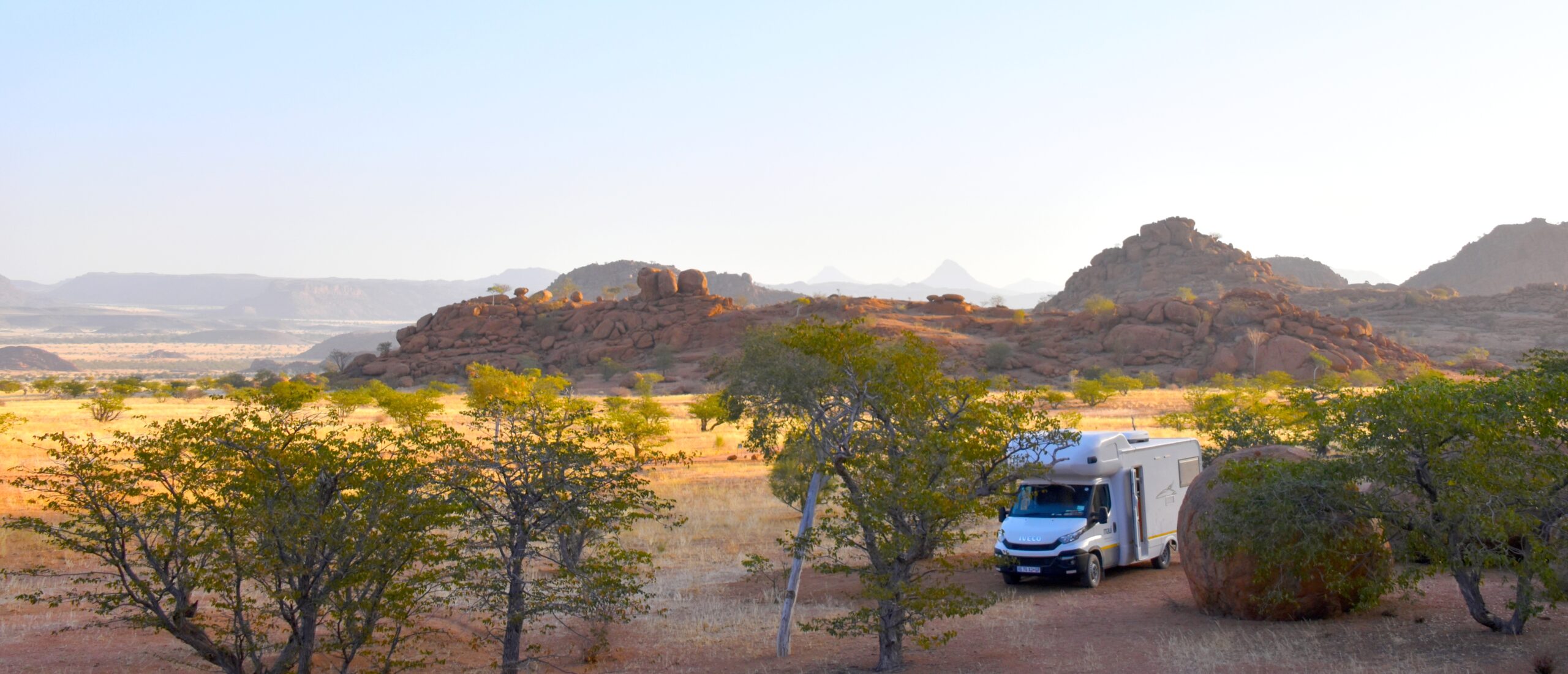 Le Damaraland nous aura époustoufflé par ses paysages mais épuisés de par ses pistes…nous avons hâte maintenant d’arriver à l’étape la plus au nord de notre périple : Opuwo…et sa route goudronnée !