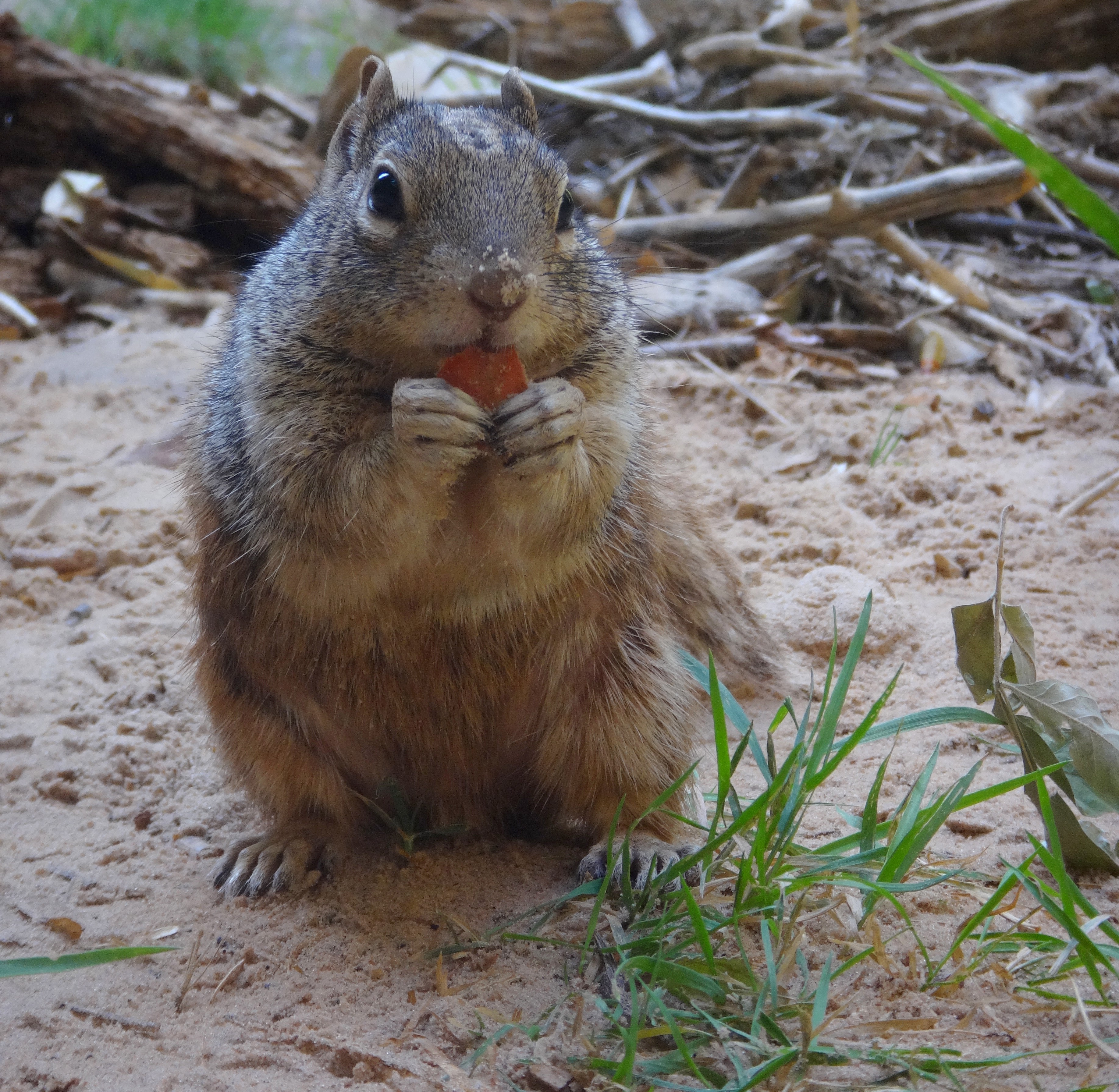 Un saut de puce depuis Las Vegas et on change radicalement d’ambiance, nous voilà à Zion ! On retrouve les joies du camping (on fera peut-être moins les malins dans 15 jours mais pour l’instant c’est top !) On dresse le campement et sommes vites envahis d’écureuils, les malins viennent nous faire coucou et, sournois comme ils sont, en profitent pour monter dans la voiture s’attaquer à nos réserves de nourriture ! On finit l’après midi dans la rivière, eau est bonne…