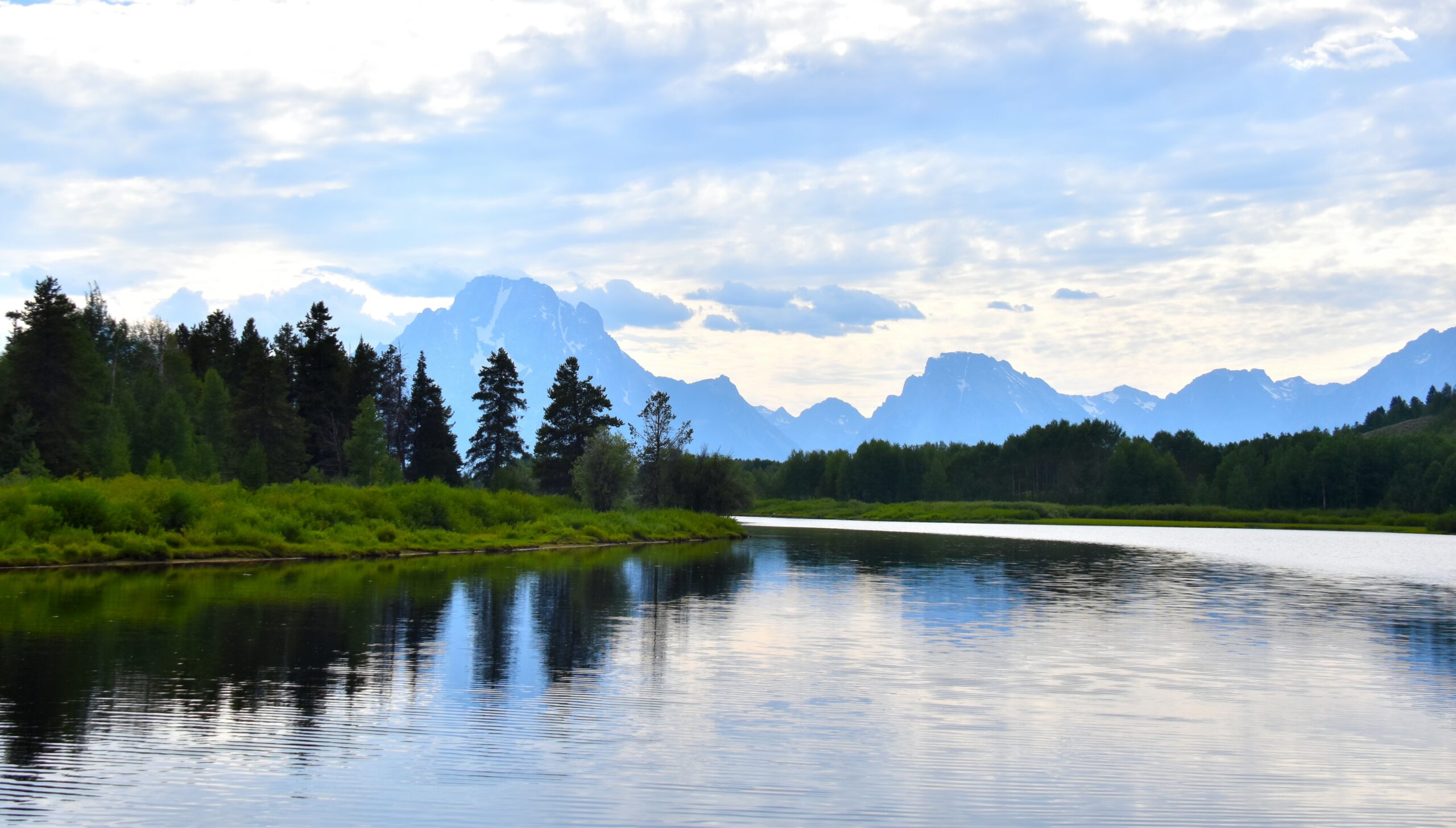 Nous voilà dans les Rocheuses ! Et s’offre à nous une image de carte postale : des sommets culminants à 4000m (les tétons), qui se reflètent dans des lacs aux eaux cristallines !