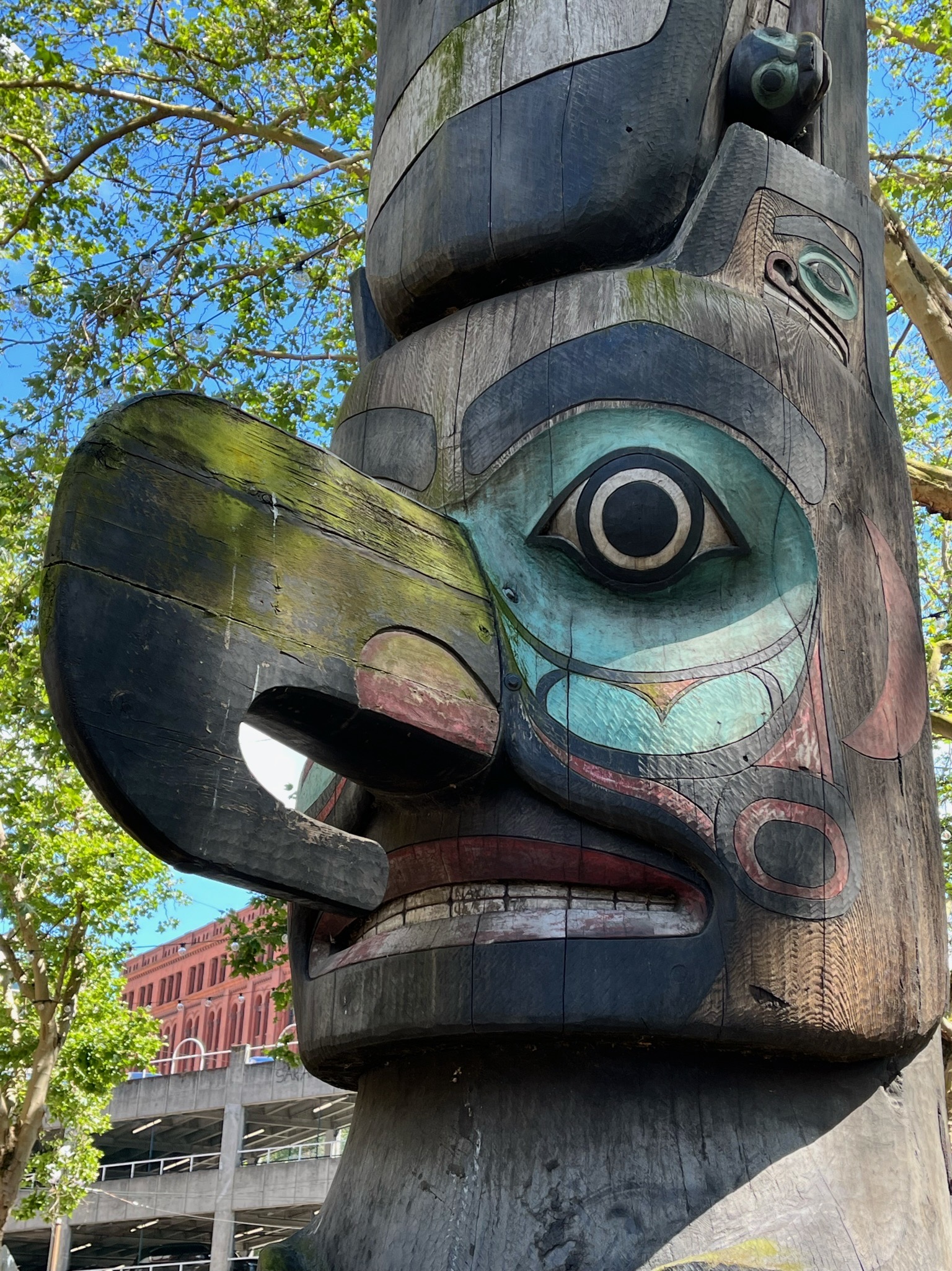 Avant de quitter Seattle, on parcourt à pied le mini centre historique autour de Pioneer Square, où trône un totem coloré.