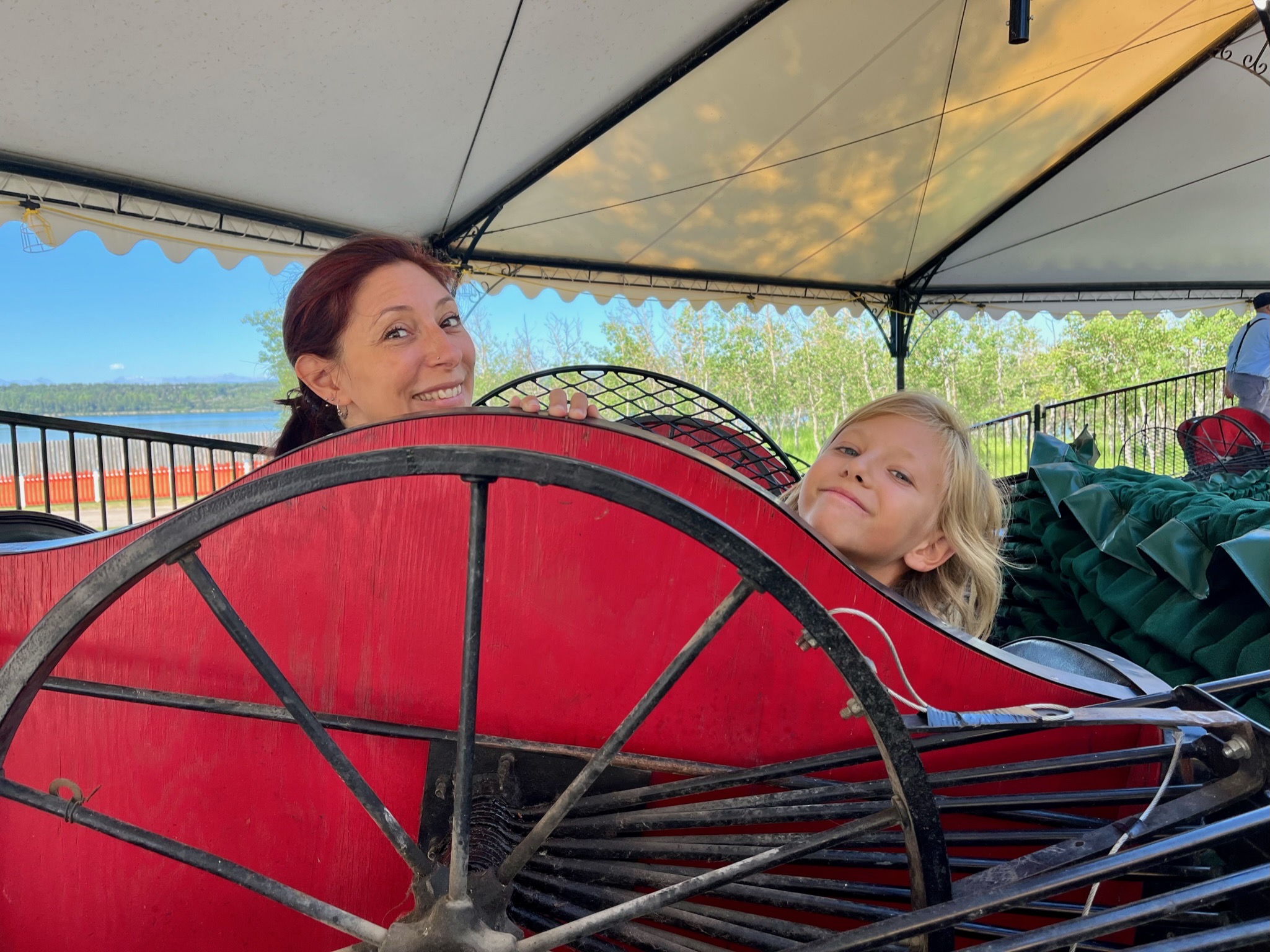 Le lendemain, nous avons fait une visite beaucoup plus sympa à l’Heritage Park. Un immense parc à thème où ont été reconstituées 3 périodes historiques de l’Ouest canadien, le tout relié par un vrai train à vapeur ! Bâtiments et manèges d’époque, acteurs en costume… tout y est !