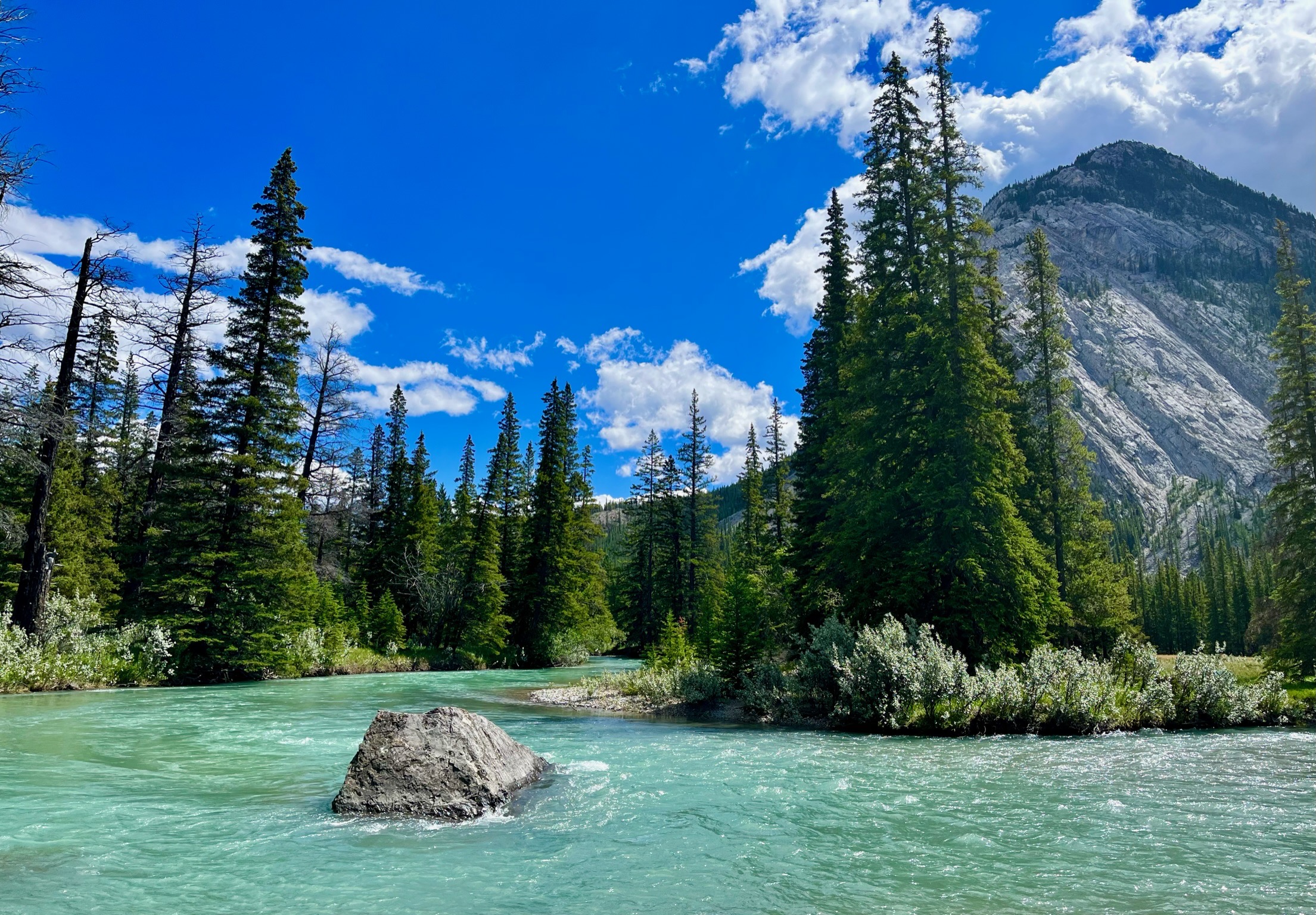 Le parc national de Banff condense tout ce qu’on est venu chercher au Canada : des forêts à perte de vue, des animaux sauvages, des lacs d’un bleu électrique et des possibilités de randos infinies !