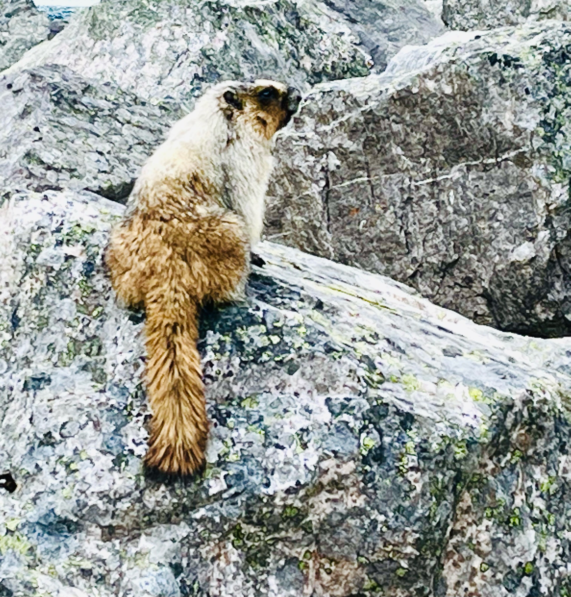 Premier arrêt : le lac Moraine. Après en avoir fait le tour, nous entamons le sentier de Consolation Lake, une belle balade de 6 km qui offre de chouettes panoramas et des marmottes à gogo.