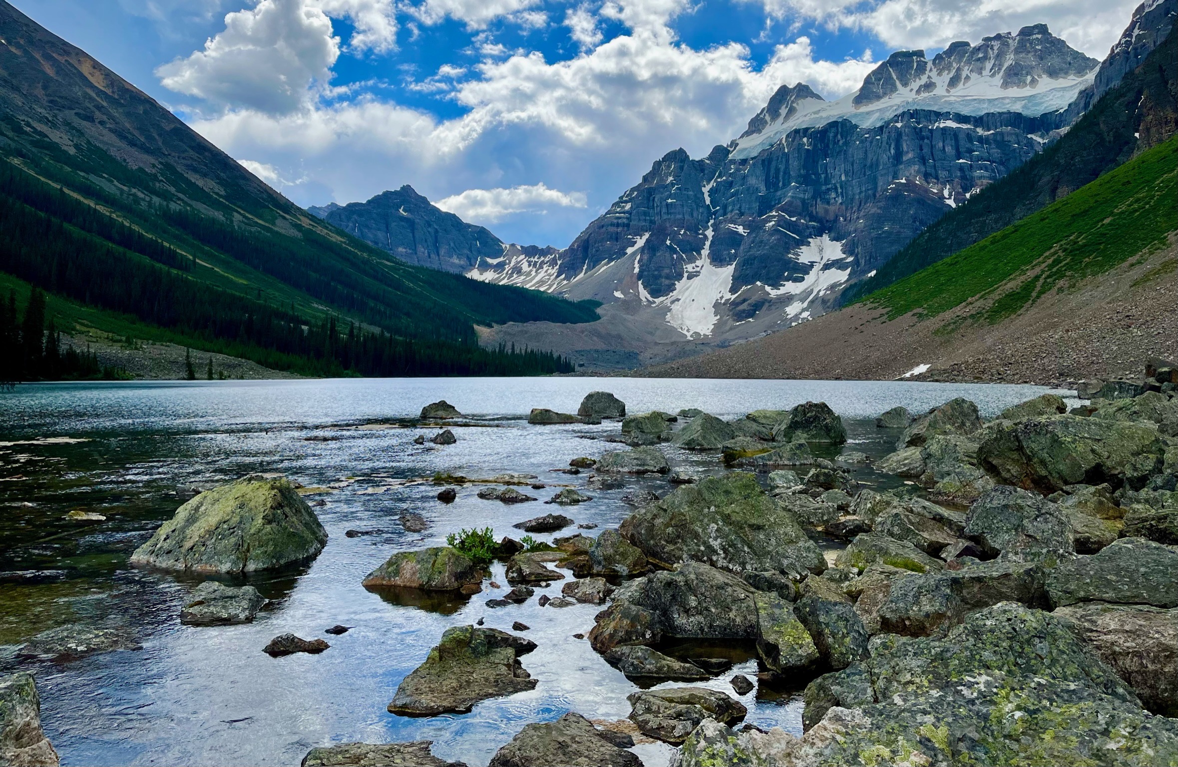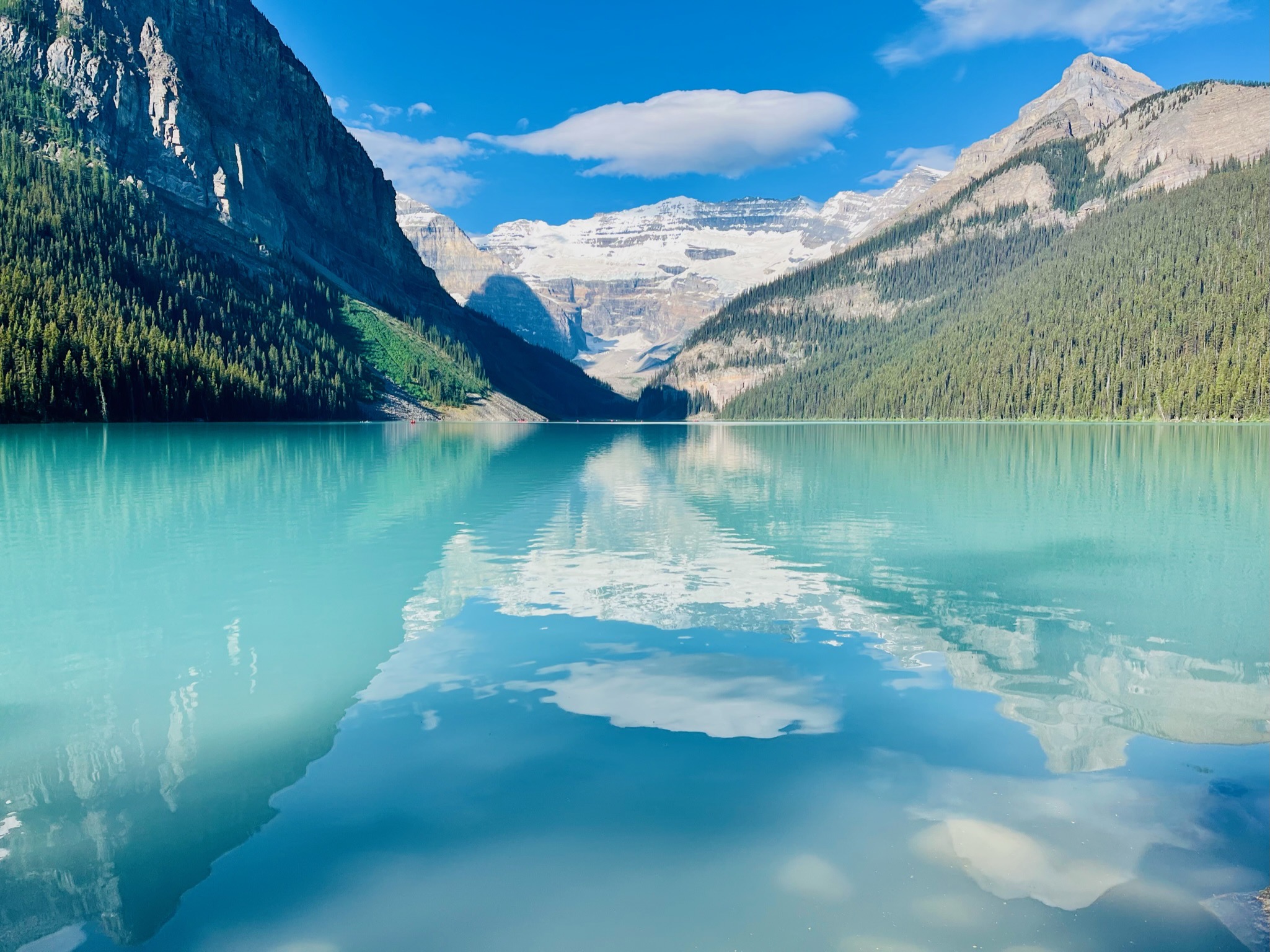 Le lendemain, le lac Louise nous en met plein la vue. Pour avoir le maximum de points de vue différents, nous faisons l’ascension du Big Beehive : 15 km aller-retour, un dénivelé de fou, mais des paysages dingues ! C’est la seule rando qui permet de voir les plages du lac… assez surréaliste ! Elle fait aussi passer par d’autres lacs plus petits, comme le Lake Agnes, et par des étendues de neige.