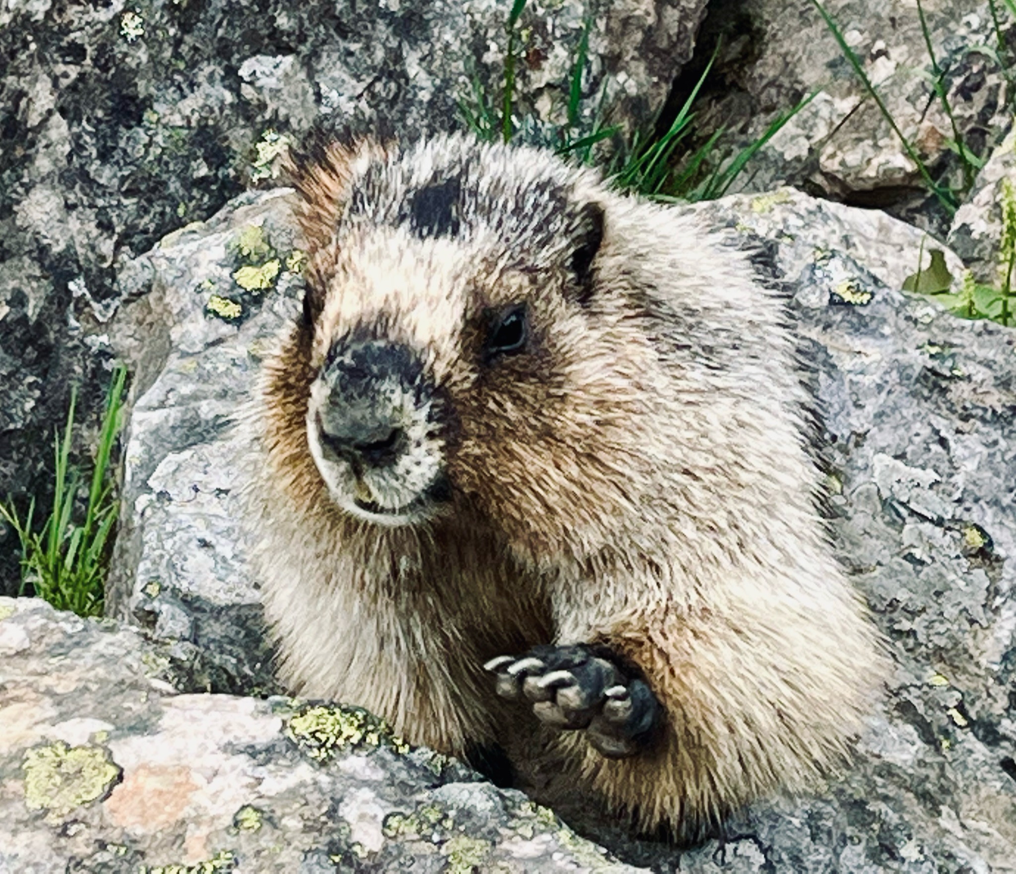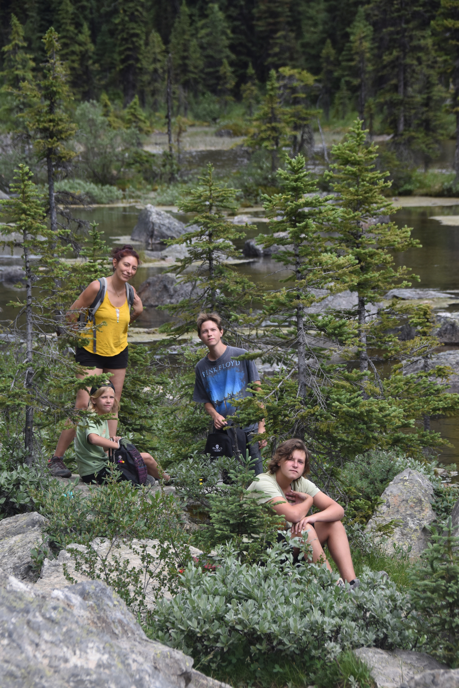 Premier arrêt : le lac Moraine. Après en avoir fait le tour, nous entamons le sentier de Consolation Lake, une belle balade de 6 km qui offre de chouettes panoramas et des marmottes à gogo.