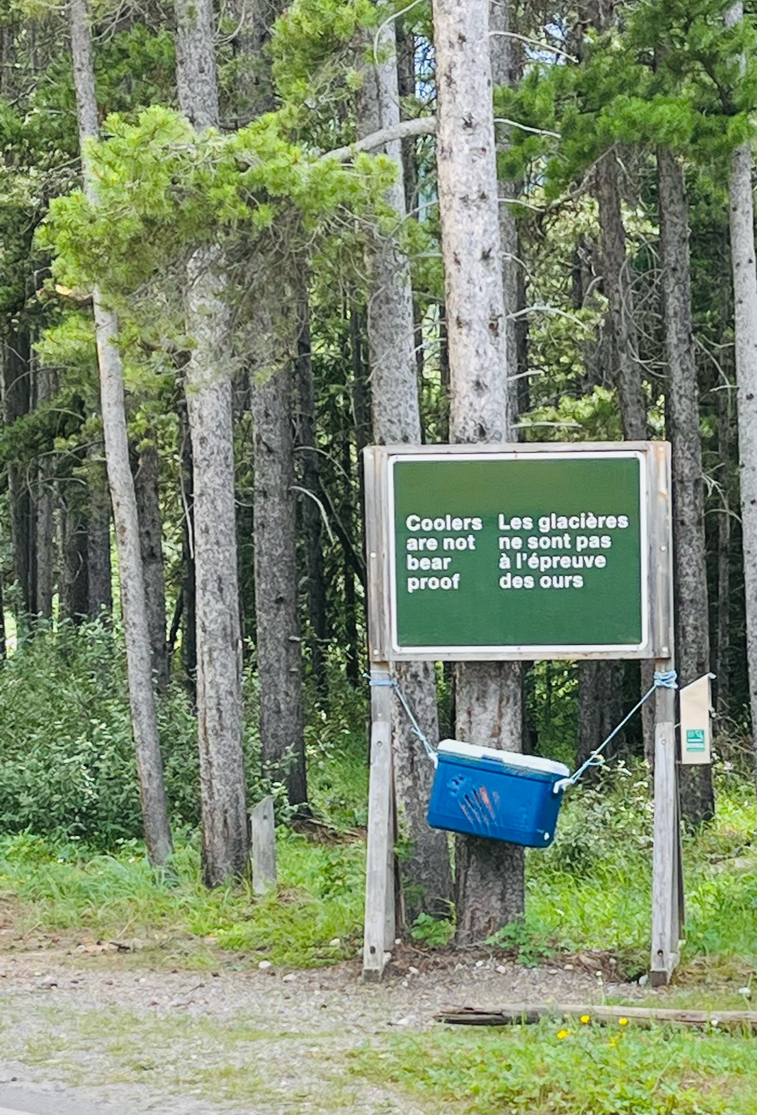 Nous commençons par nous balader dans la ville. Très chics, les restos et boutiques hors de prix s’alignent le long de la rue principale. Ça reste néanmoins très mignon et le Banff Park Museum vaut le coup d’œil (d’autant qu’il est gratuit pour les détenteurs du Pass Canada). Nous en profitons pour aller aux sources chaudes et faire le plein de courses, dont l’incontournable spray au poivre pour éloigner les ours ! Au final nous n’avons jamais eu à nous en servir, on a juste pu voir un jeune ours brun dans le camping, qui ne s’est même pas laissé prendre en photo…