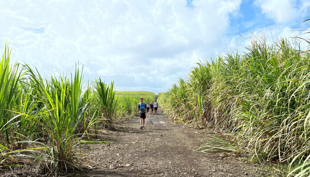 Aux alentours on a visité le Domaine Saint Aubin. Une visite passionnante où on en apprend davantage sur la culture de la canne à sucre, de sa transformation en rhum, mais aussi sur la vanille, un autre joyau de l’île. Au sud, les champs de canne sont omniprésents, c’est la campagne !