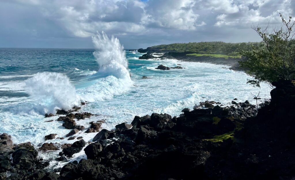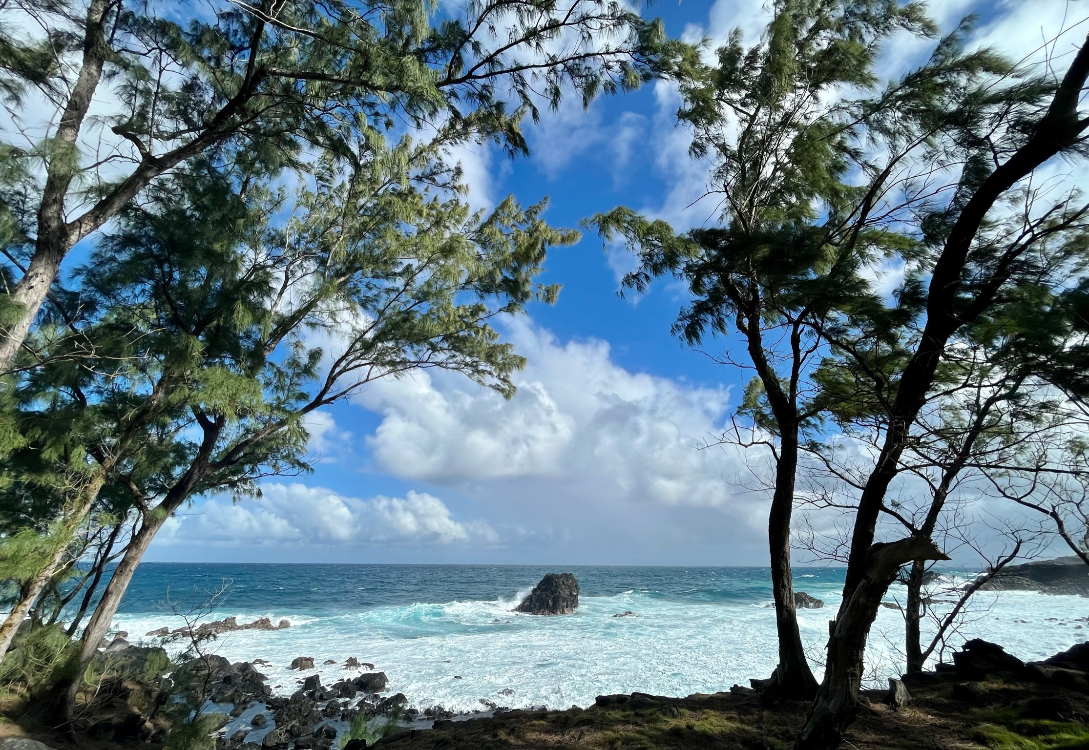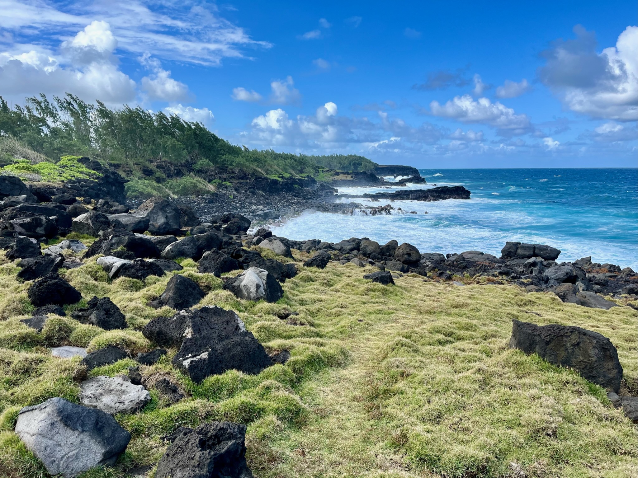 Le soleil est de retour : on fonce au pont naturel. Là, les falaises de roches volcaniques se dressent au-dessus d’un océan déchaîné. C’est magnifique ! On longe la côte jusqu’au souffleur. Peu impressionnant, mais le sentier nous fait découvrir des paysages étonnants, que l’on n’imagine pas du tout lorsque l’on pense à l’île Maurice.
