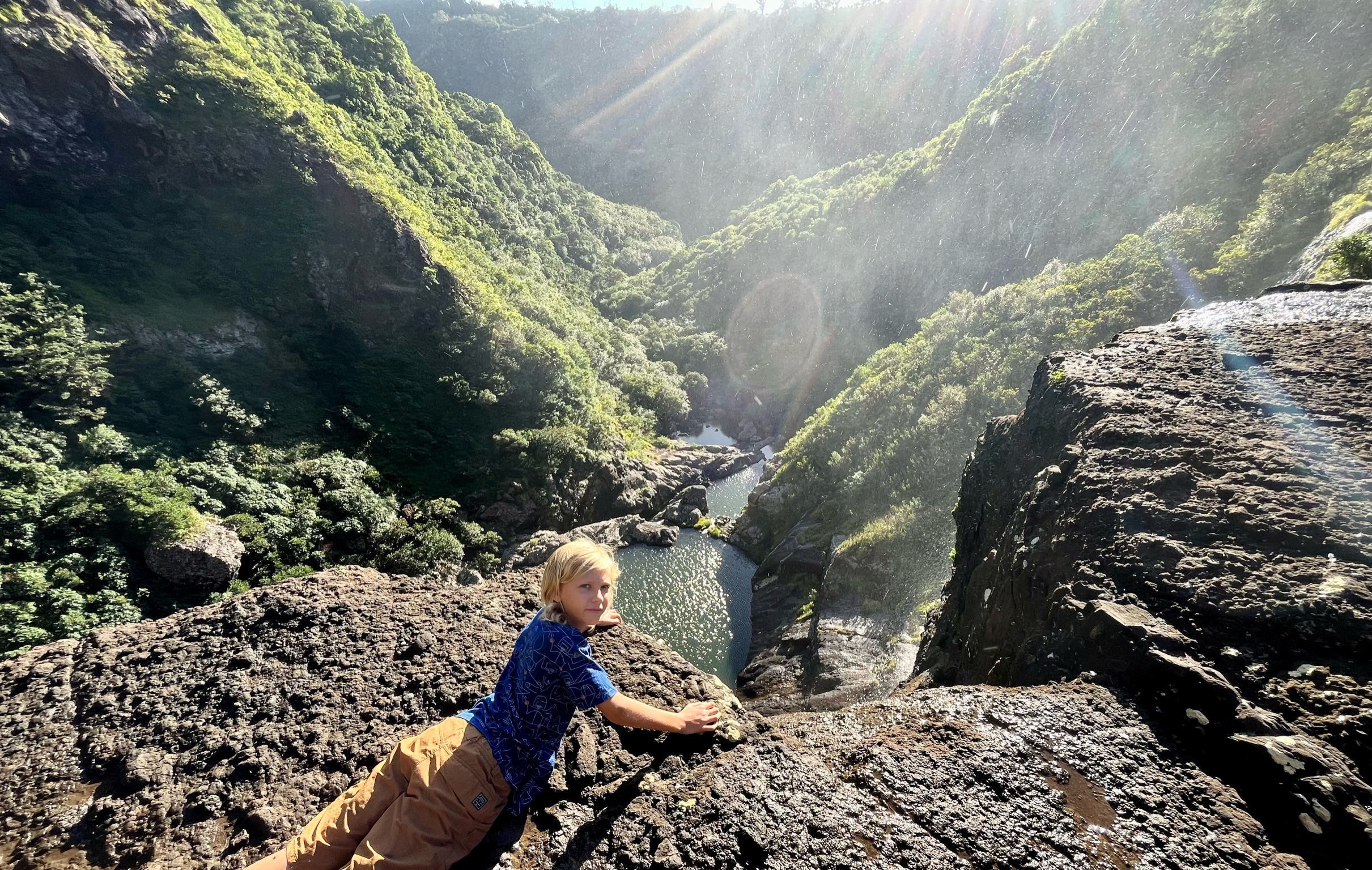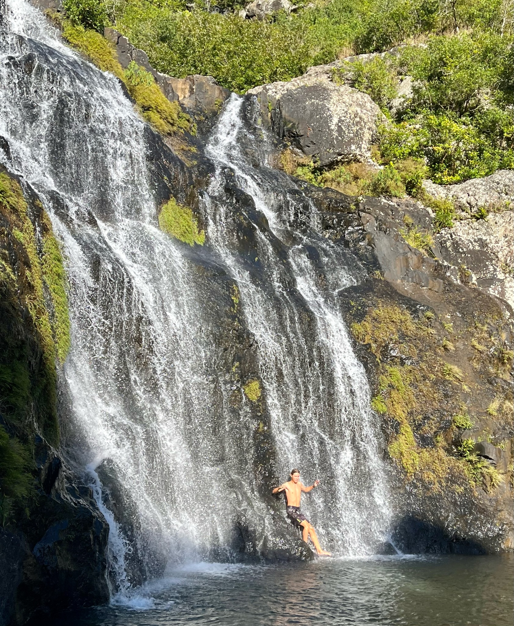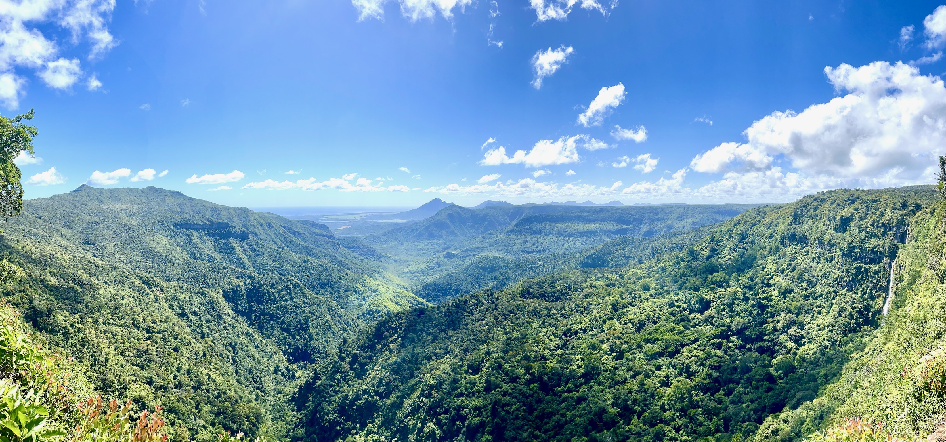 La météo est avec nous pour faire la randonnée des 7 cascades. Situées en enfilade dans une vallée encaissée, elles ne sont accessibles qu’avec un guide. Plébiscité sur les groupes FB, nous avons réservé avec Wesley Choolun, qui a été super ! La rando est assez technique : ça glisse, on fait de l’escalade en se tenant aux goyaviers, ça grimpe ou descend sec… il faut être en bonne condition physique, mais quels paysages époustouflants ! Pendant près de 3h on en a pris plein les yeux…