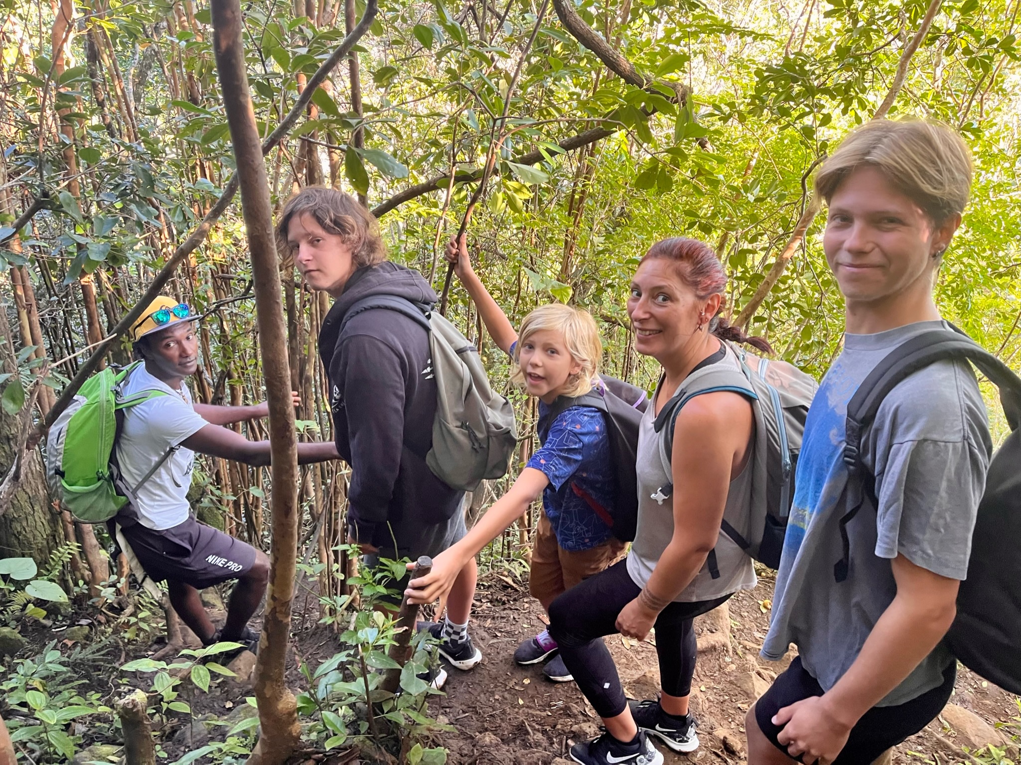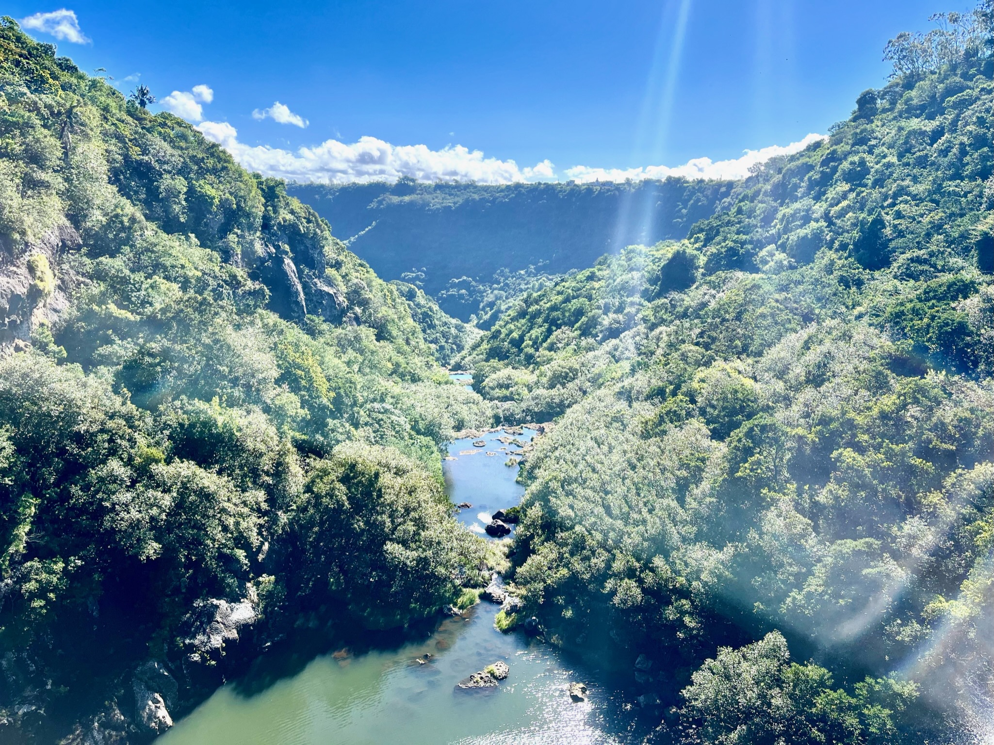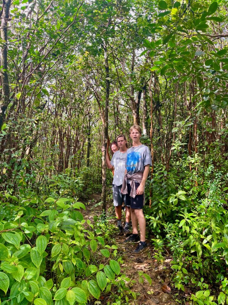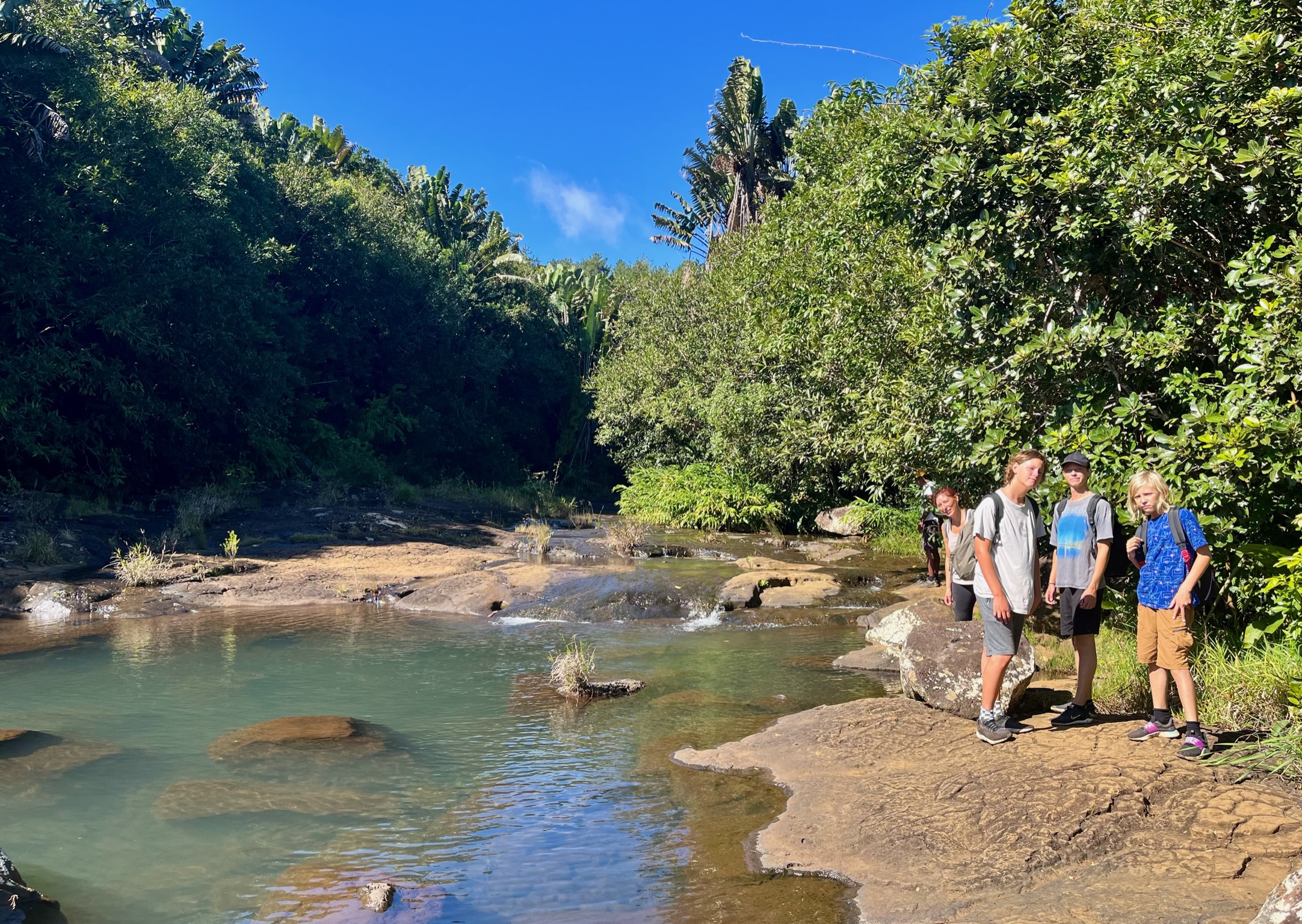 La météo est avec nous pour faire la randonnée des 7 cascades. Situées en enfilade dans une vallée encaissée, elles ne sont accessibles qu’avec un guide. Plébiscité sur les groupes FB, nous avons réservé avec Wesley Choolun, qui a été super ! La rando est assez technique : ça glisse, on fait de l’escalade en se tenant aux goyaviers, ça grimpe ou descend sec… il faut être en bonne condition physique, mais quels paysages époustouflants ! Pendant près de 3h on en a pris plein les yeux…