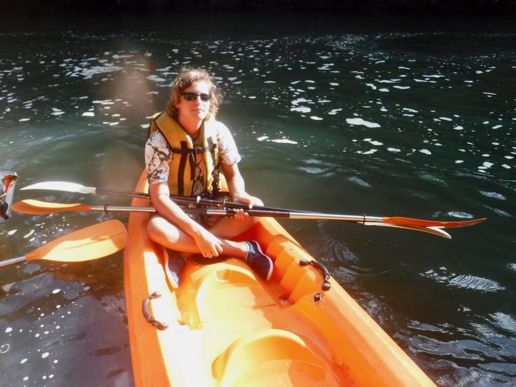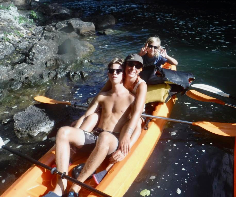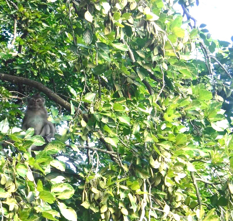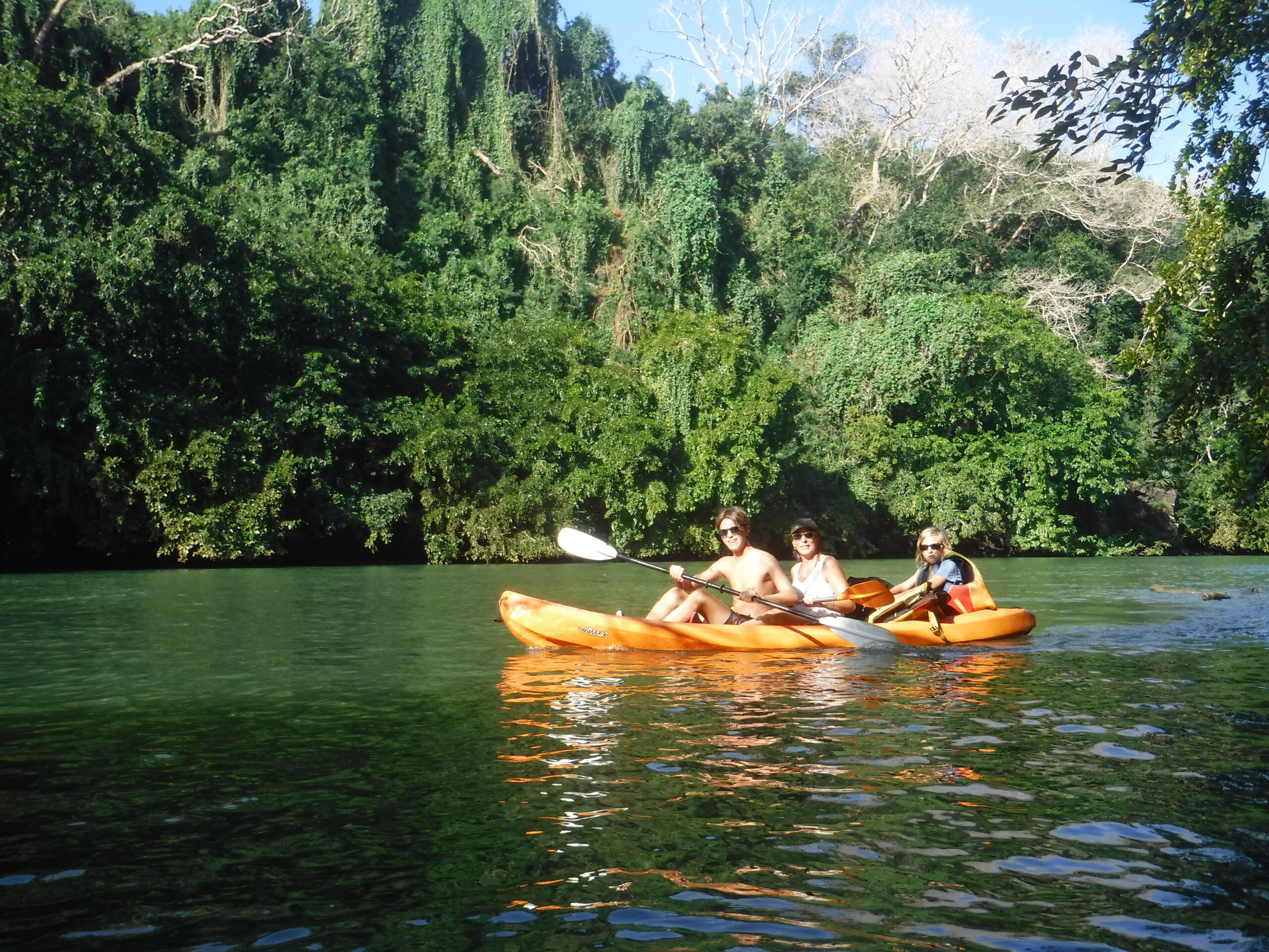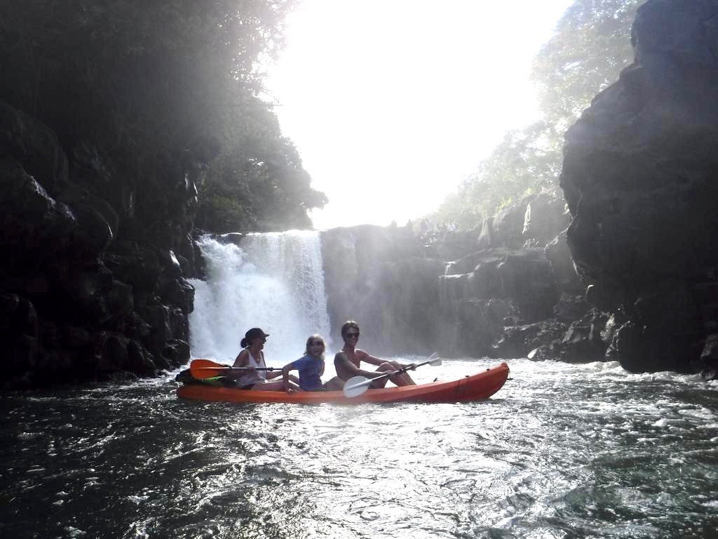 Une fois posés, on grimpe dans les kayaks pour aller faire un tour à la cascade, située à 1 km de là. Rigolo et rafraîchissant ! Au retour on a vu une colonie de singes…